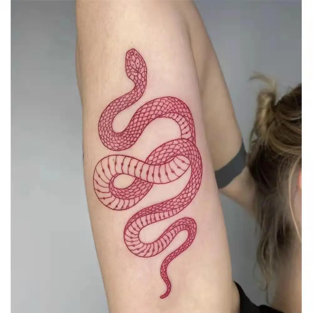 Водостойкие временные тату-наклейки в виде Красной змеи для женщин, наклейки на талию, поддельные татуировки большого размера