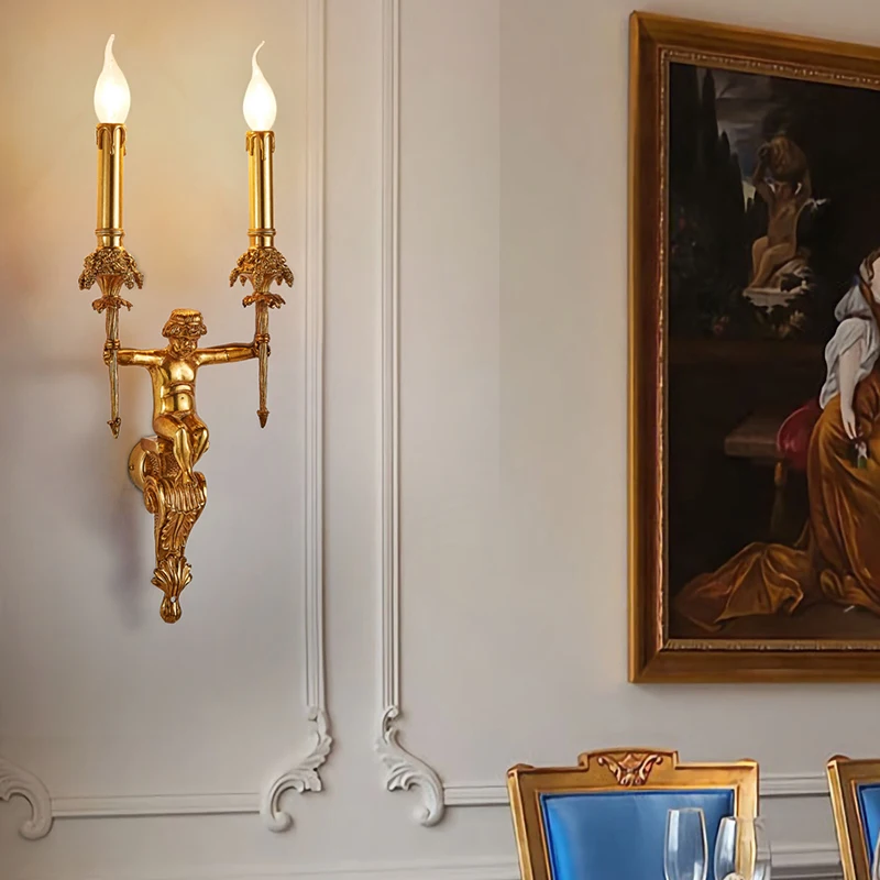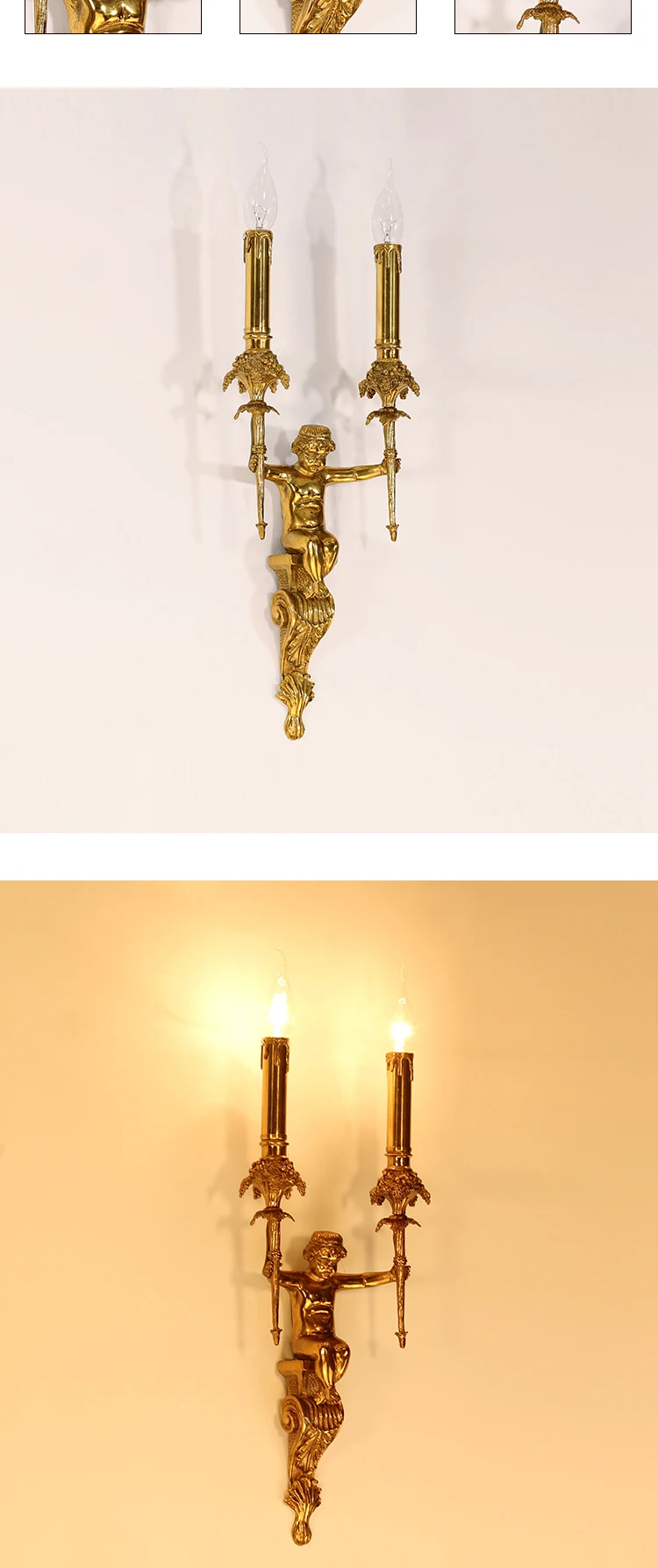 Настенный светильник с французским медным ангелом, фоновая настенная лампа для гостиной, спальни, прикроватной тумбочки, кабинета, лестницы, Европейский роскошный креативный