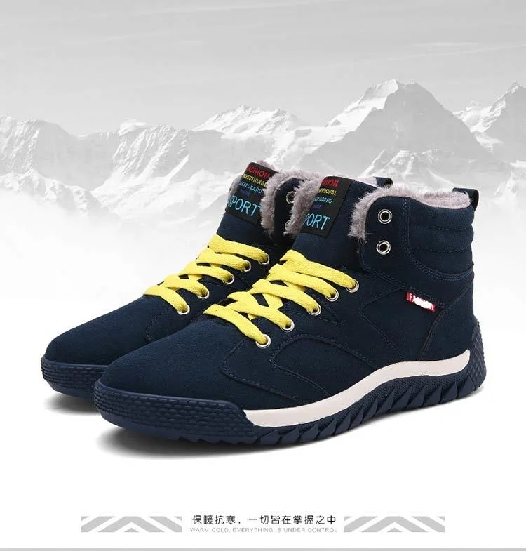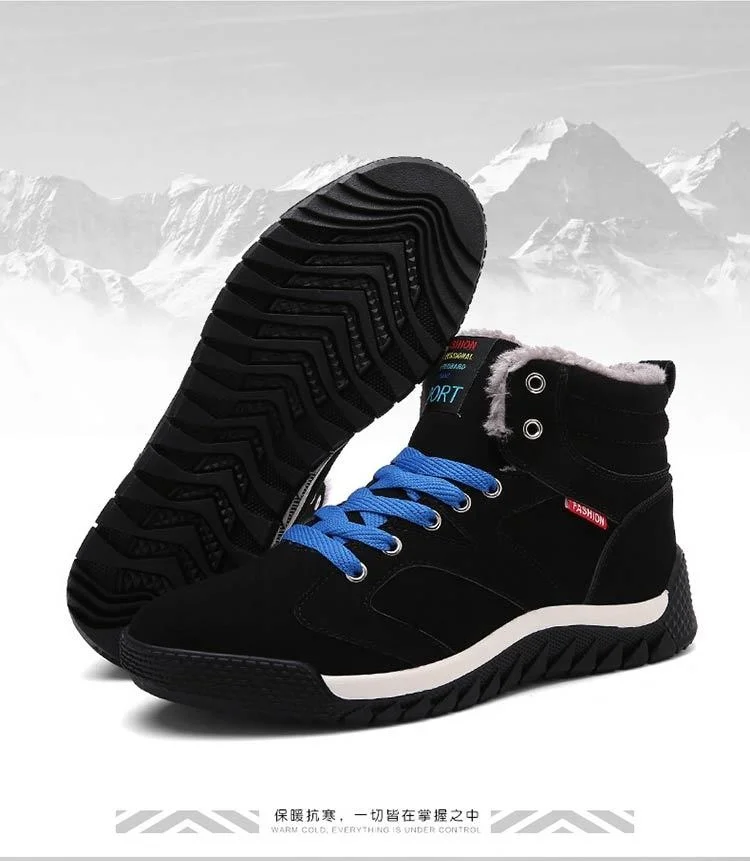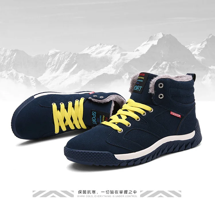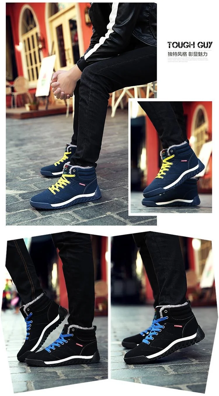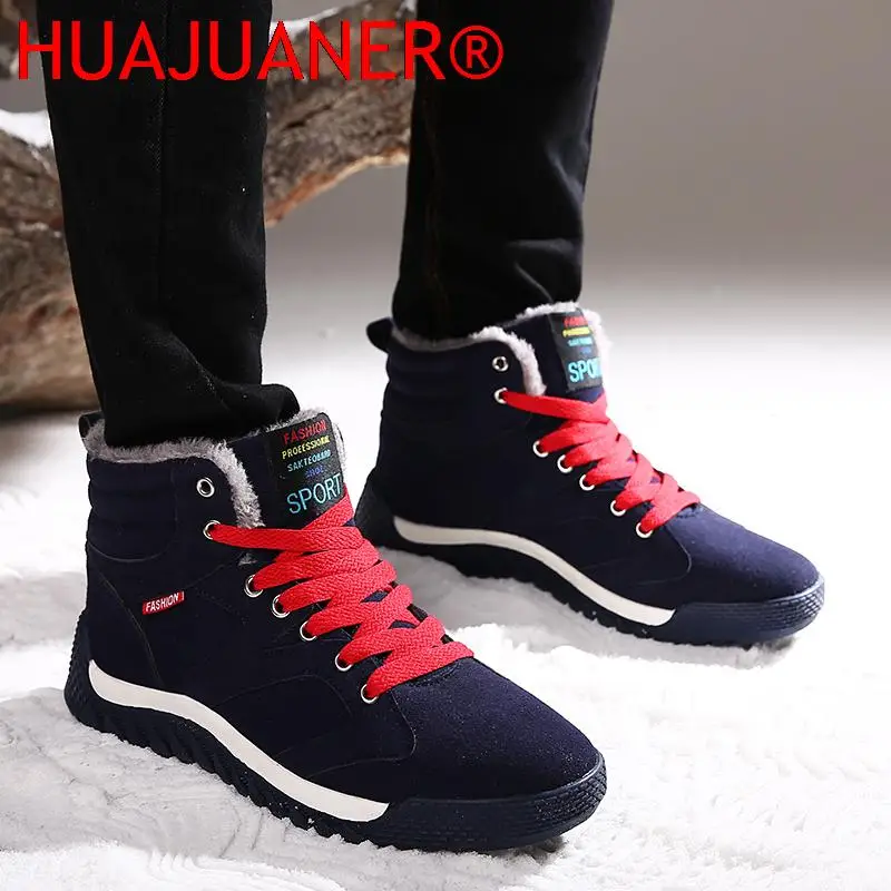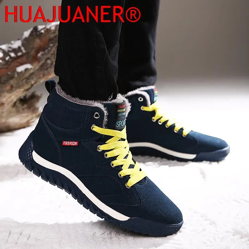 Зимние ботинки для мужчин, плюшевые теплые зимние ботинки, мужская обувь, большие размеры, зимние Нескользящие кроссовки, черные, новинка 2021, высокие мужские спортивные модные ботинки