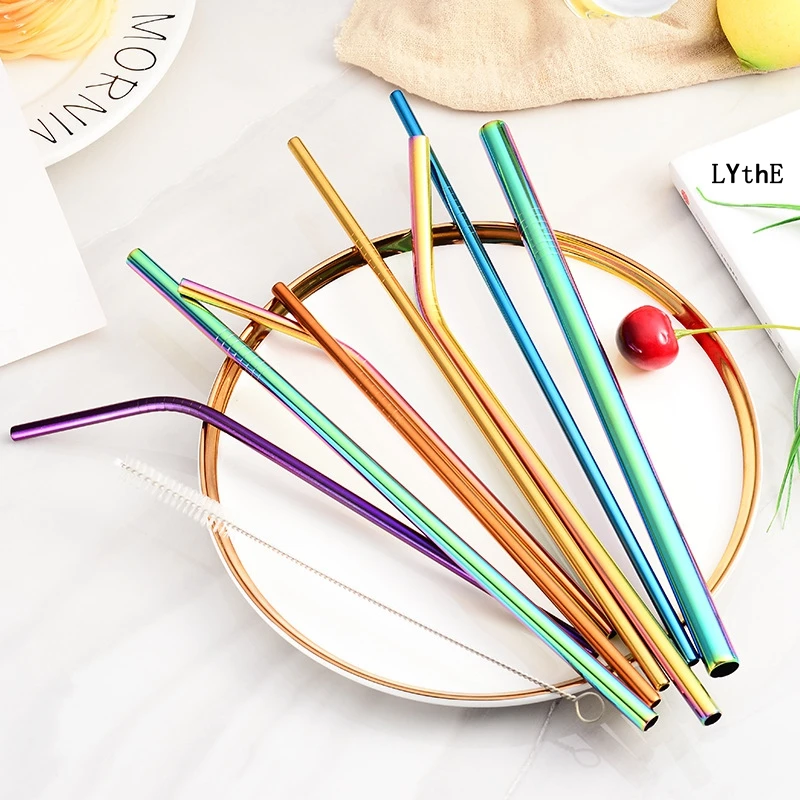 1 шт. многоразовые питьевые соломинки 304 из нержавеющей стали, металлическая деталь с чистящей щеткой, Детские коктейли с молоком