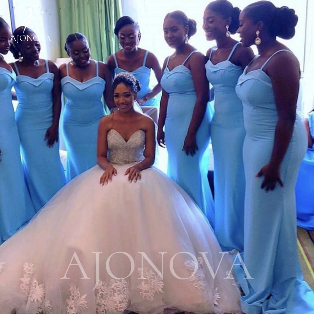 Женское платье с юбкой-годе, небесно-голубое платье на тонких бретельках, Элегантное свадебное платье для подружек невесты, 2022