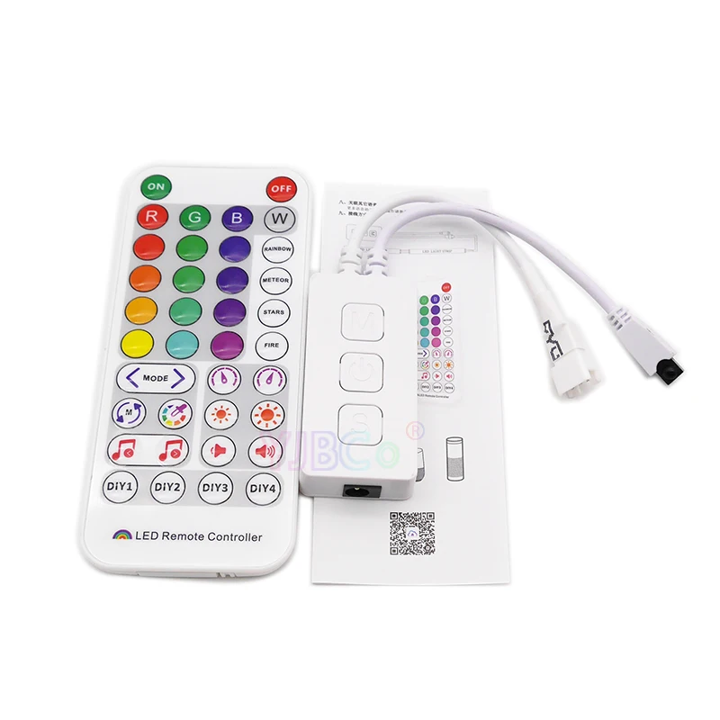 Параметры продукта 1. Рабочее напряжение: DC5-24V 2. Диапазон регулировки: 15-20 м 3. Метод управления: ИК-пульт дистанционного управления + управление приложением 4. Максимальный ток нагрузки: 6A 5. Управляемые точки: 900 точек 6. Рабочая температура:-20-60C 7. Выход: Одна Головка и двойная головка (опционально) Особенности 1. Поддержка WS2812, WS2811, 1903, 16703 и других волшебных огней 2. 3 способа управления: ИК-инфракрасный 38 клавиш, 3 кнопки на контроллере, приложение для смартфона 3. С функцией синхронизации 4. Поддержка изменения имени устройства и калибровки последовательности каналов RGB 5. Встроенный 180 видов динамических эффектов, регулируемая скорость, яркость, автоматическая петля, встроенный 8 музыкальных режимов, регулируемая чувствительность 6. Поддержка голосовых команд для прямого вызова 8 статических сцен с цветовым эффектом, 8 сцен с динамическим эффектом и 8 сцен с музыкальным эффектом 7. Поддержка Amazon Alexa, Google Assistant, Tmall Genie и других голосовых помощников для управления световым эффектом, яркостью и цветом 8. С функцией памяти отключения питания, источник питания имеет функцию анти-обратного подключения