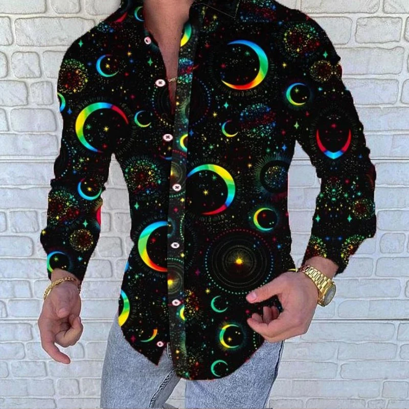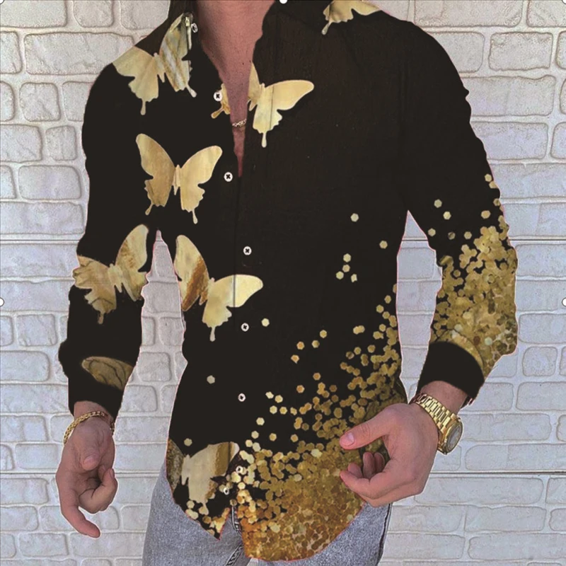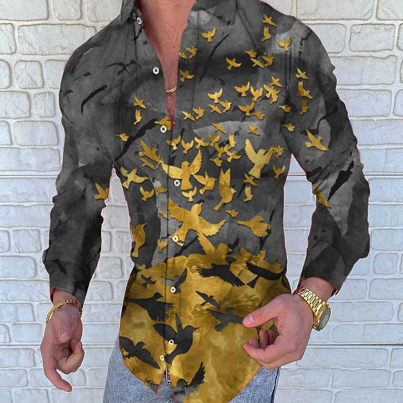 Рубашка мужская демисезонная с длинным рукавом, цветочным принтом и отложным воротником