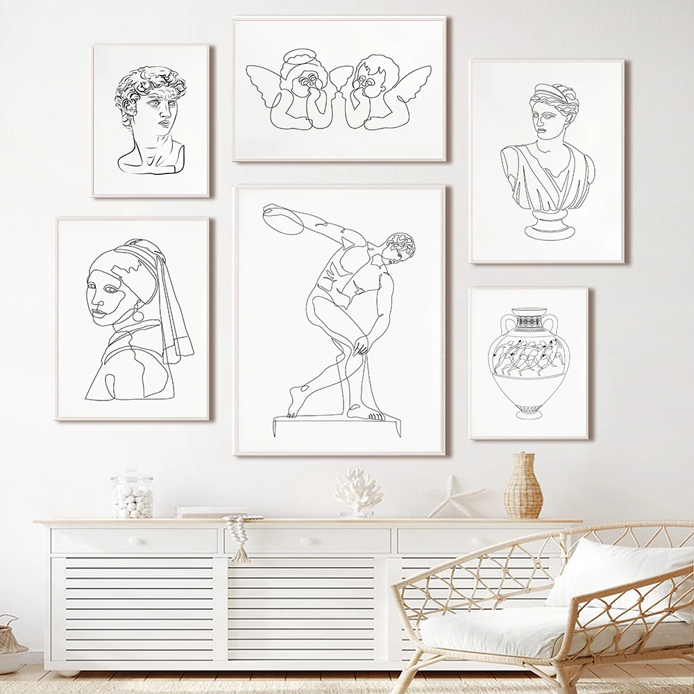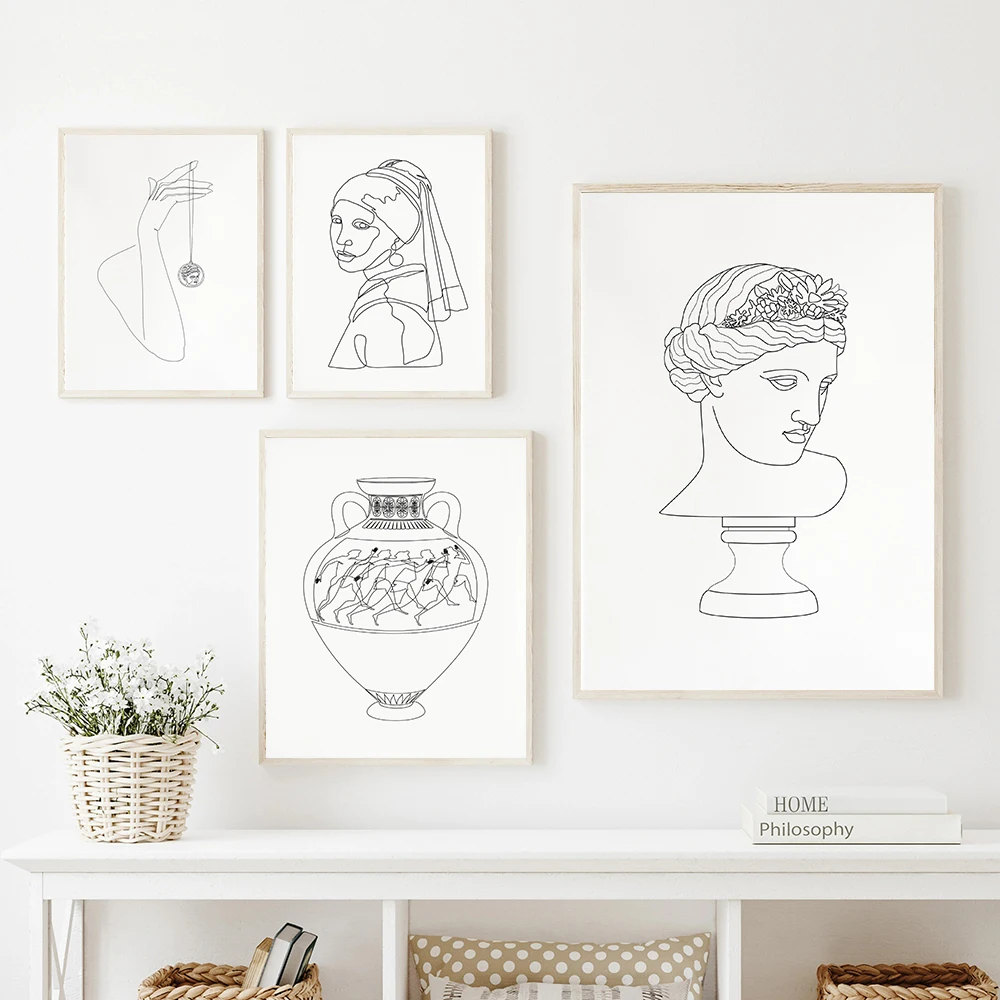 Давид абстрактная линия художественные принты керамика богиня фотография Греция ваза Современный минималистичный домашний декор живопись стен