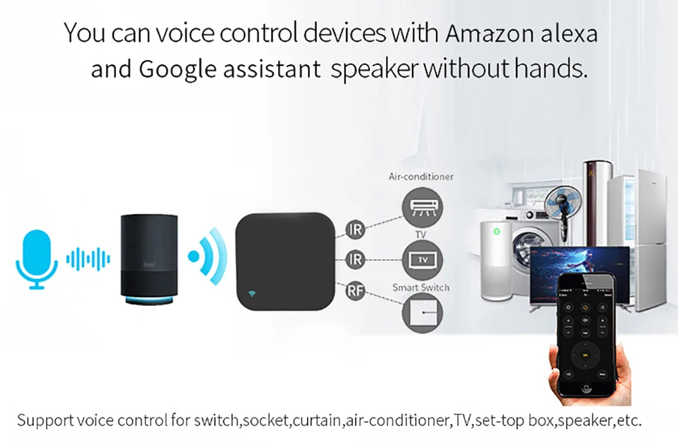 Попрощайтесь с использованием пульта дистанционного управления для каждого из ИК-бытовых приборов, таких как телевизор, кондиционер, ТВ-бокс, светильник, вентилятор, аудио и т. Д.Вы можете дистанционно управлять этими устройствами с помощью нажатия пальца на мобильном приложении, также вы управляете устройствами RF-enabeld, такими как занавески, роллер затвор, двери гаража, RF переключатель и т. Д.Пожалуйста, внимательно прочитайте руководство пользователя перед использованием и сохраните его для справки в будущем.