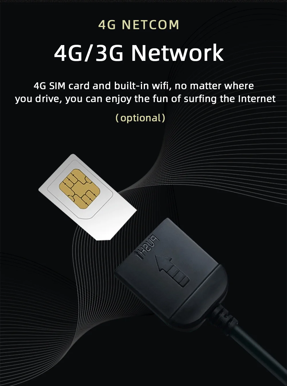Благодаря sim-карте 4G и встроенному Wi-Fi вы можете наслаждаться серфингом в Интернете независимо от того, где вы едете, возможность серфинга в Интернете/прослушивания музыки/просмотра фильмов. Перед включением устройства вставьте sim-карту.