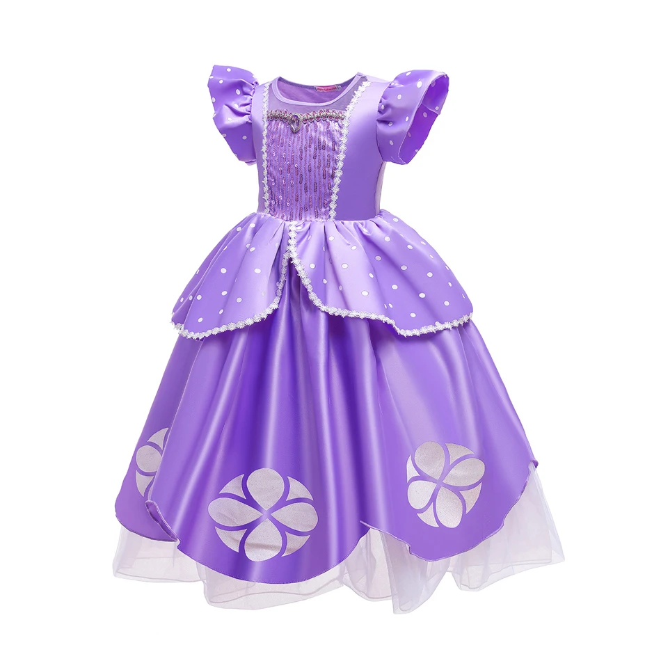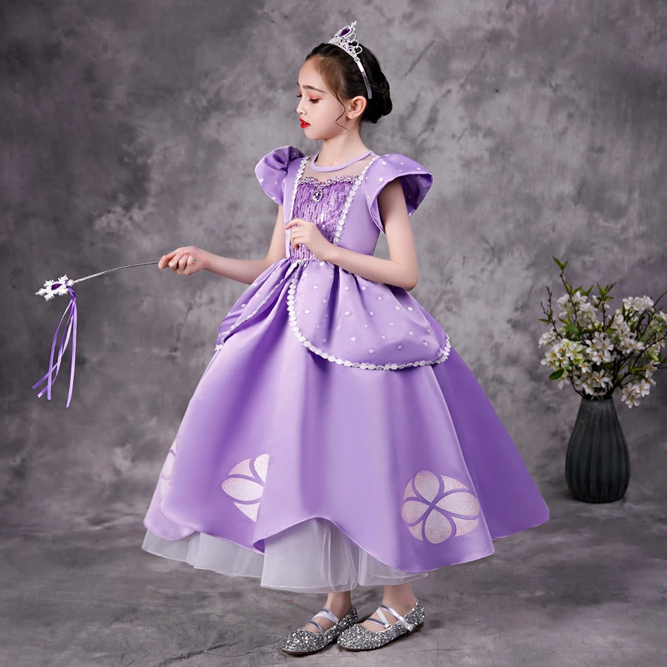 Детское платье принцессы Софии, косплей-костюм для девочек, многослойные платья с пышными рукавами, детвечерние праздничные Нарядные Костюмы Софии на день рождения