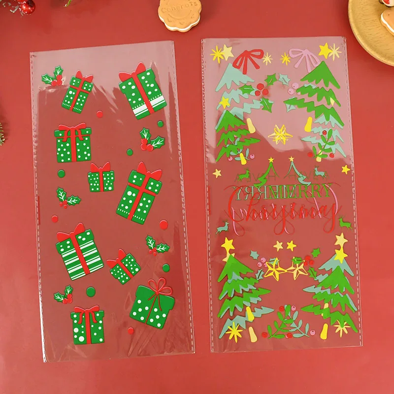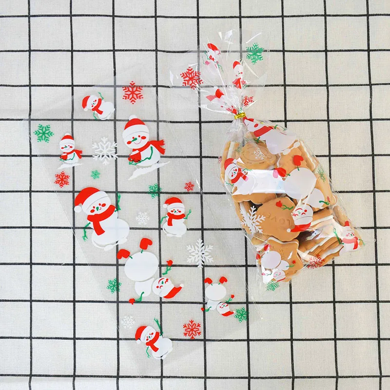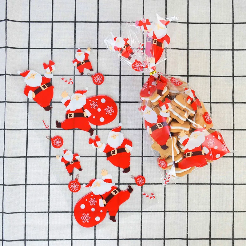 50 шт.лот Рождественское украшение, Санта-елка, снежинка, прозрачный пакет для конфет, печенья, пластиковые подарочные пакеты, товары для рождевечерние