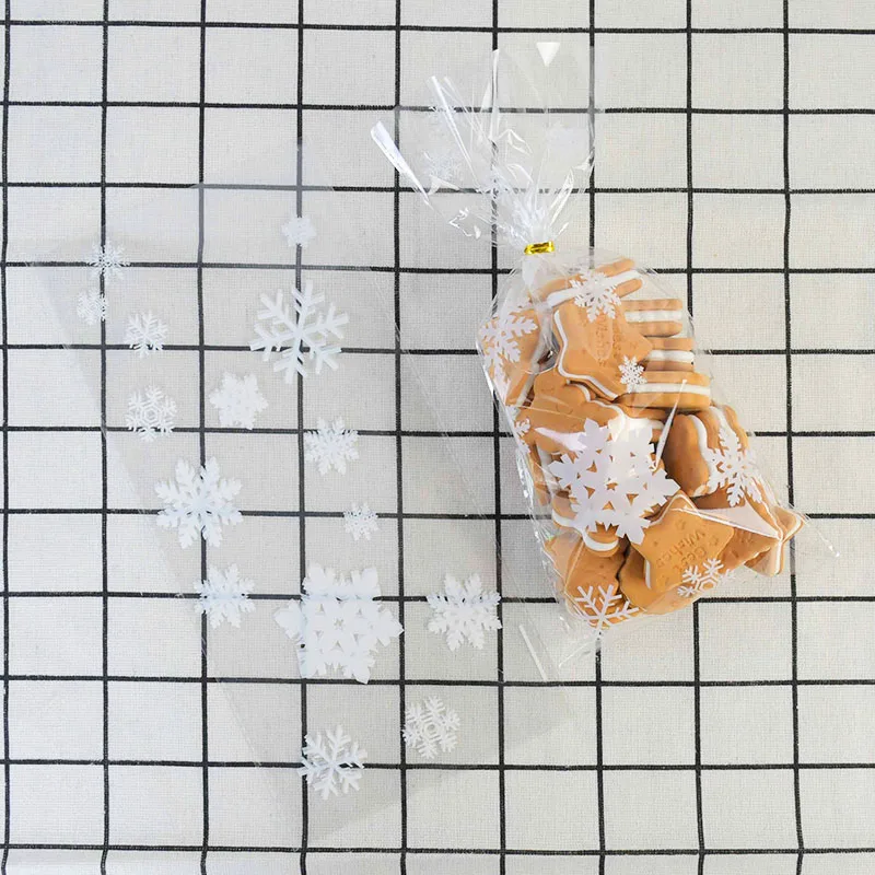 50 шт., прозрачные рождественские подарочные пакеты в виде снежинок