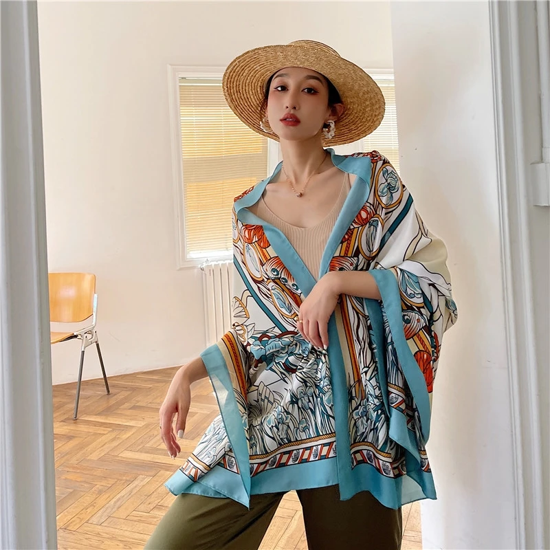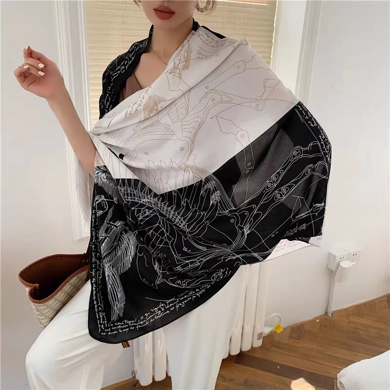 Роскошный шелковый шарф, женский платок из пашмины, Женские палантины, женские пляжные парео, палантины, бандана, дизайнерские брендовые длинные шарфы 2021
