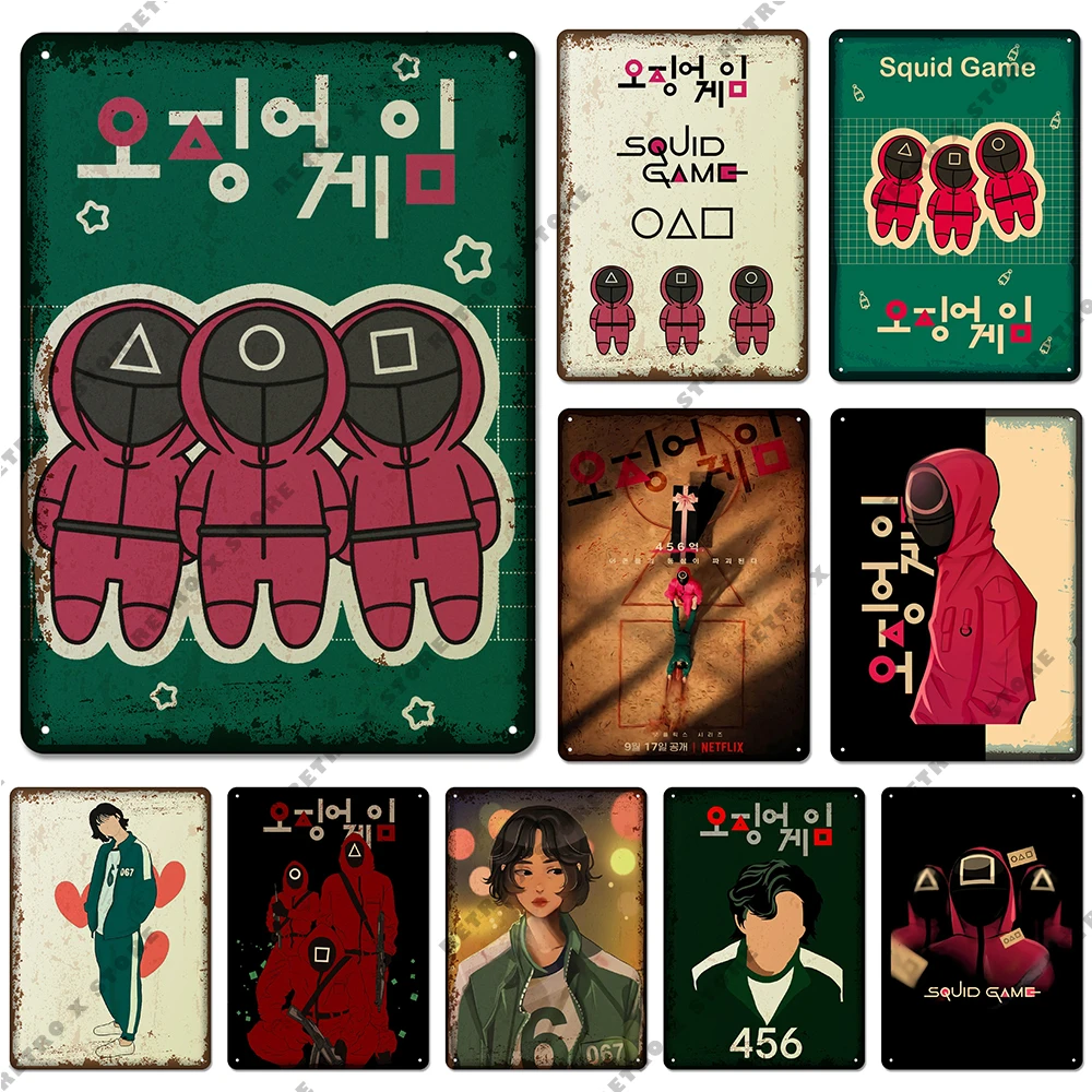 Горячий фильм жестяной знак кальмар игра металлический плакат Современная Волшебная стена искусство железная табличка Паб Клуб кафе кинотеатр домашний винтажный Декор