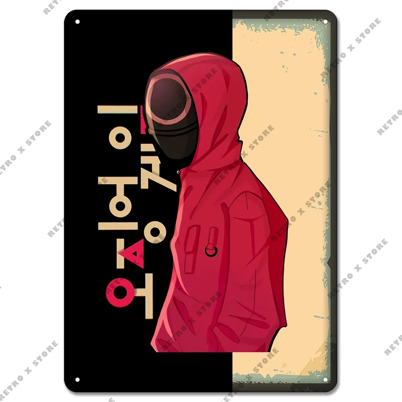 Жестяная вывеска из игры кальмар, популярный металлический постер д...