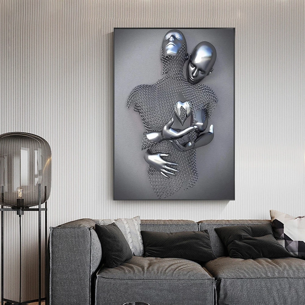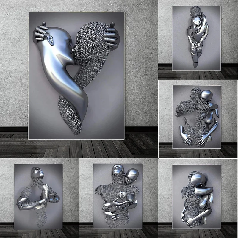 2021 креативная Металлическая статуэтка, Художественная Картина на холсте, романтические постеры, наклейки, 3d Настенная картина, домашний декор, без рамки