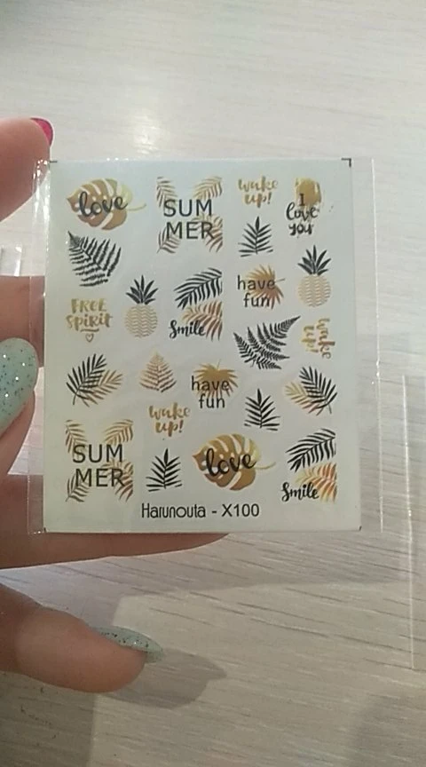 Спецификация: Бренд: HarunoutaТип: водные наклейки для ногтейРазмеры: 6.4cmX5.3cmКоличество: 1 Лист наклейки для ногтей Посылка: 1 Лист наклейки для дизайна ногтей Как использовать: 1. Triming, очистить и полировать ногти, покрасить цвет фона на ногти и высушить его.2. Снимите пленку продукта, Вырежьте похлопыватель и погрузите ее в воду 10-20 секунд.3. Смочите ногти, приклейте Паттер в положение.4. Промойте воду бумажным полотенцем и высушите.5. Крышка с прозрачным лаком для ногтей и высушить.