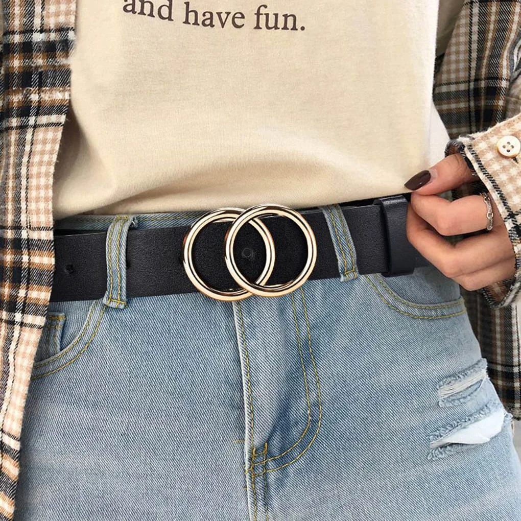 Ремень с двумя кольцами для женщин, модный пояс из искусственной кожи для платьев и джинсов, с металлической пряжкой в форме сердца, повседневный пояс для девушек