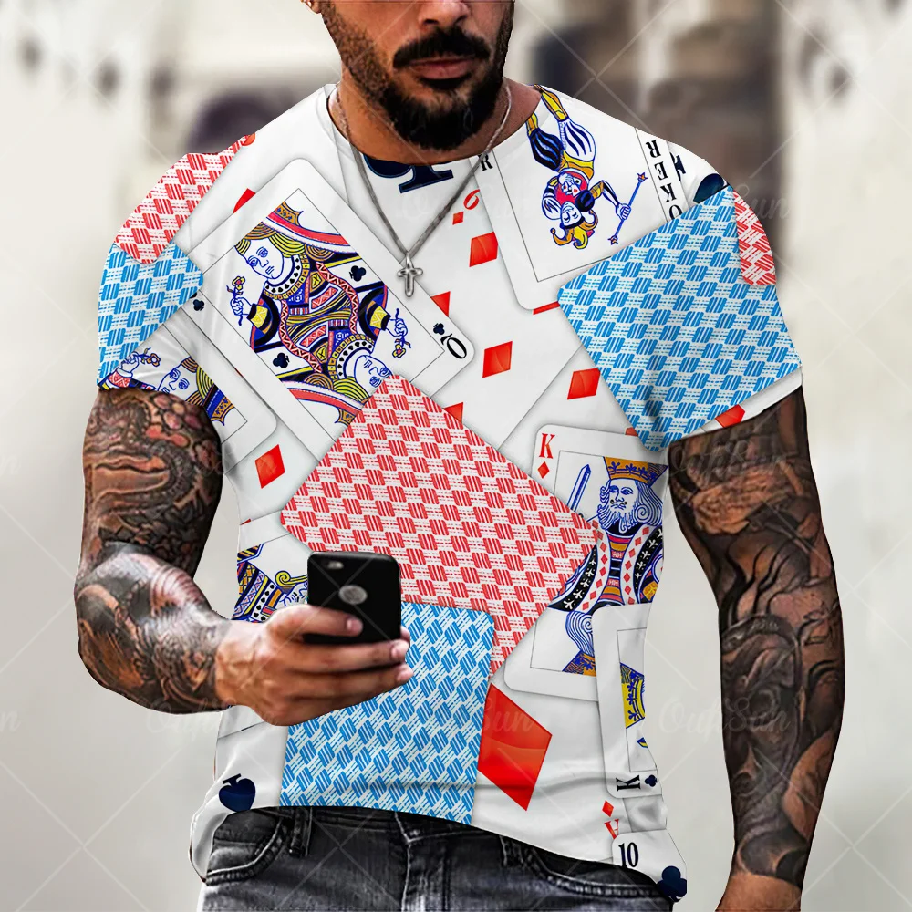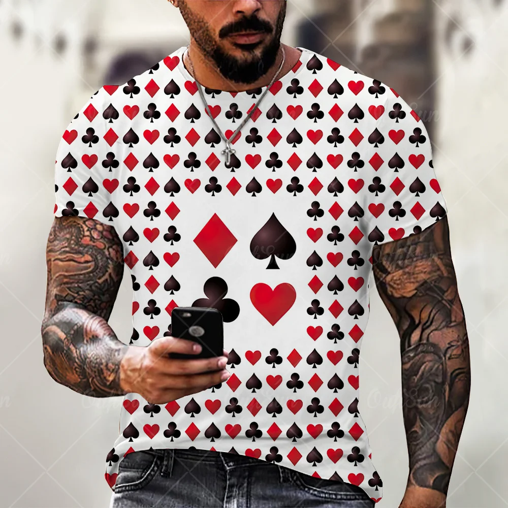 Футболка оверсайз для мужчин и женщин, Повседневная Свободная рубашка с 3D-принтом черепа и покера, топ с круглым вырезом и коротким рукавом, лето