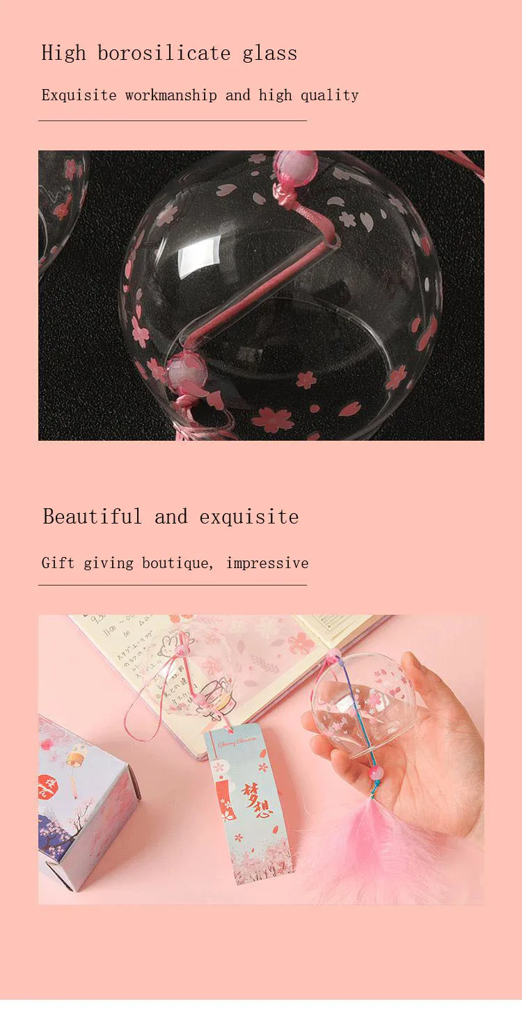 Японские ветроколокольчики из стекла с цветком вишни, колокольчики,...