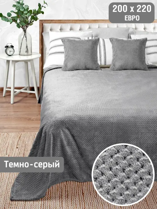 Плед на кровать SoVi темно-серыймокрый асфальт покрывало на кровать велсофт мягкий плед