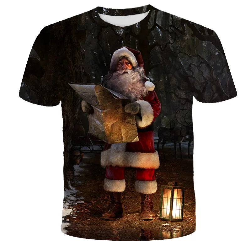 Снеговик, рождественская елка, Санта-Клаус, Детская футболка с 3D принтом, футболка с мультяшным анимационным рисунком для мальчиков и девочек, Рождественская футболка