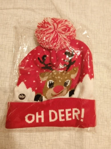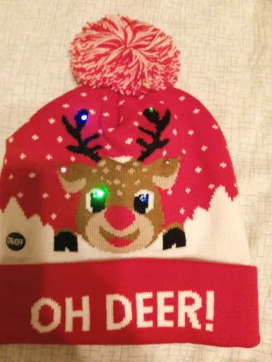 Описание этого продукта полностью соответствует. Материал мягкий, Рисунок очень милый, а цвета красивые. Я рекомендую это. Я даже планирую купить их для остальной части семьи. Было бы очень приятно для рождественского обеда. Очень хорошо подходит для взрослого и, конечно, также для ребенка, потому что это трикотажный стиль, который, следовательно, может расслабиться и адаптироваться к окружности головы.