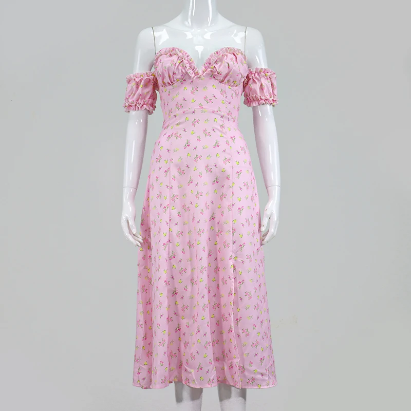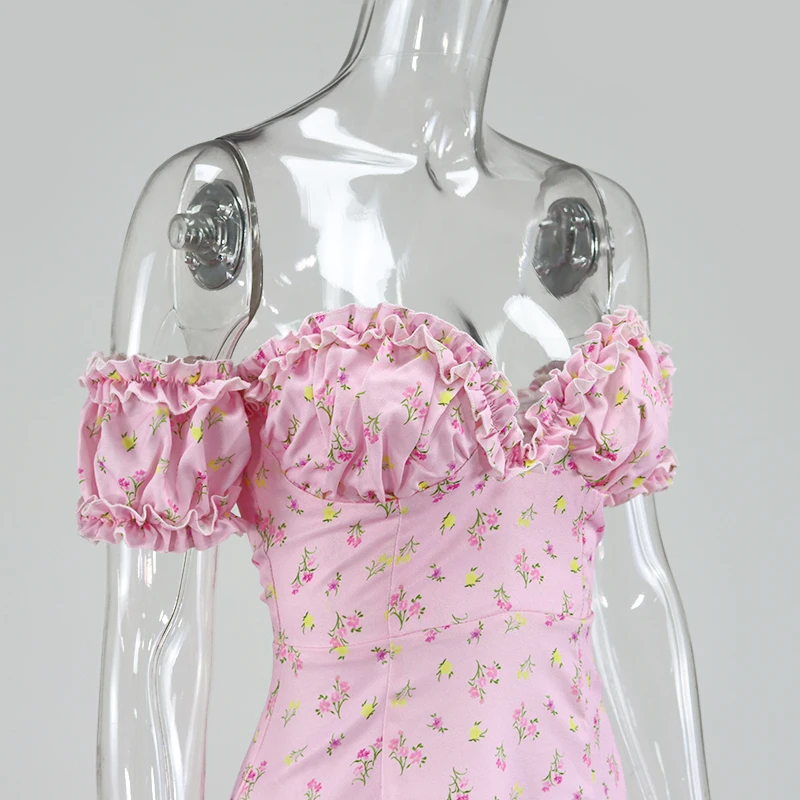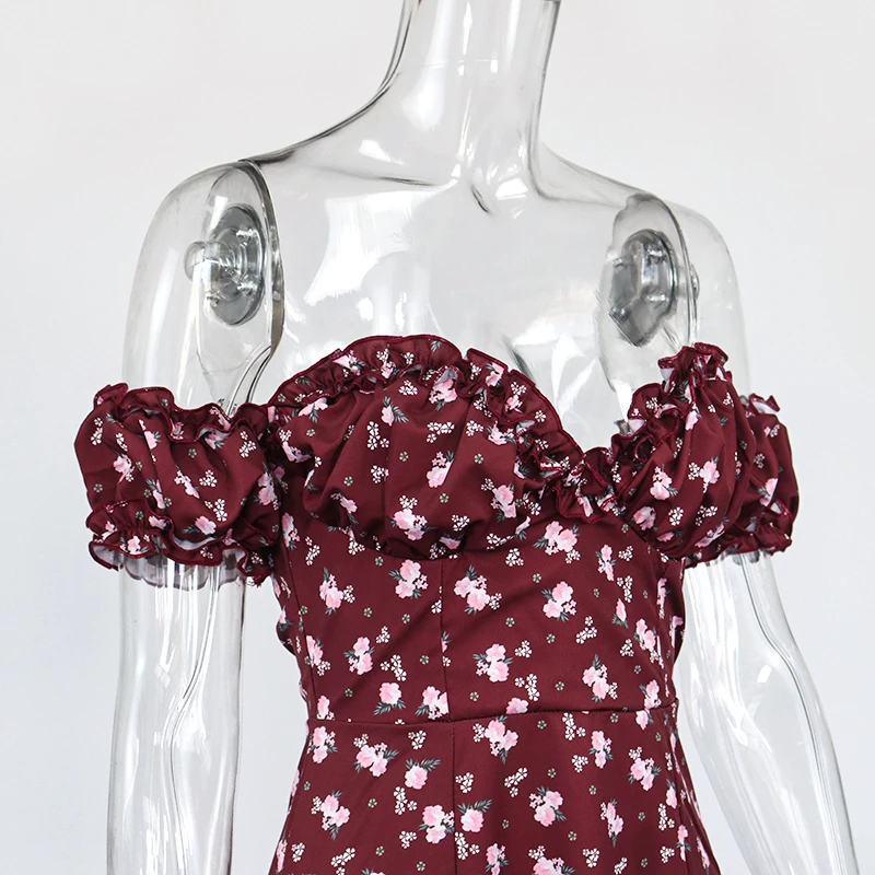 Женское летнее платье с коротким рукавом-фонариком, длинное Праздничное Платье макси с рюшами и высоким разрезом, пикантное платье с кулиской, сарафан
