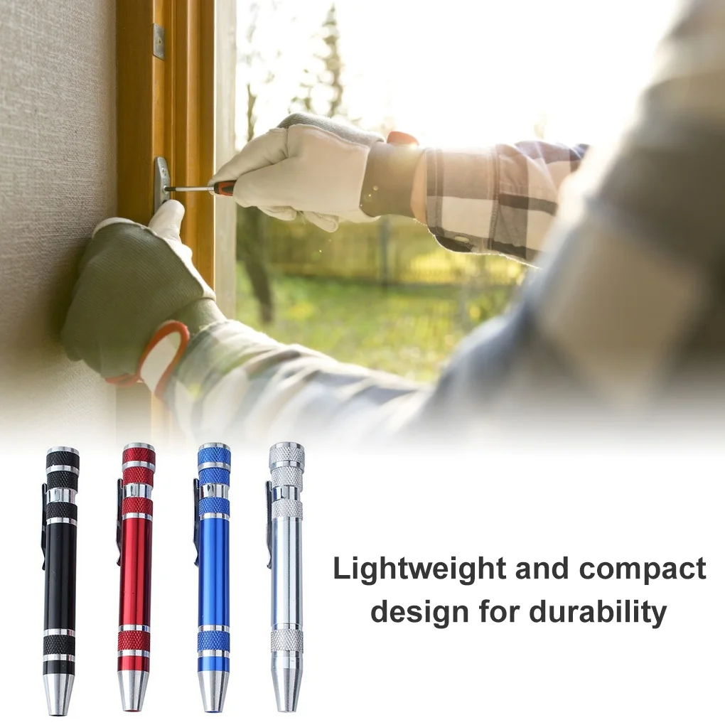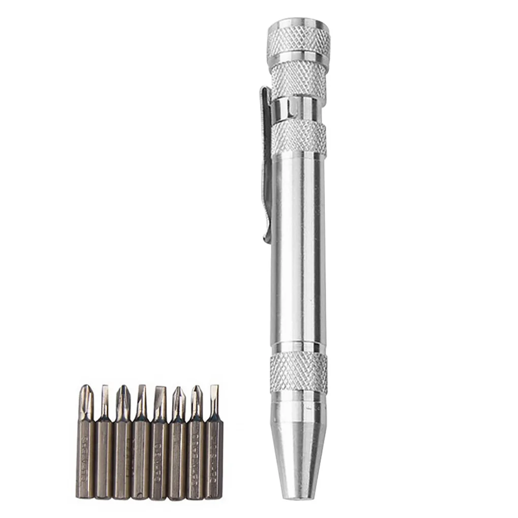 Профессиональный портативный отверточный инструмент легкий, компактный и прочный.Мини-отвертка легко переносится, очень подходит для дома и DIY, таких как электронная сборка и обслуживание, украшение дома и другие работы.Набор прецизионных отверток является наиболее удобным инструментом для небольших проектов. Он имеет дизайн в форме ручки, 8 различных головок отвертки в ручке.Нижняя часть отвертки имеет адсорбционный дизайн, который может прочно зафиксировать головку отвертки.Очень легко заменить головку отвертки, просто Отвинтите верхнюю крышку ручки непосредственно, чтобы вынуть головку отвертки, которая должна быть использована, И затем поместите его в наконечник держателя.