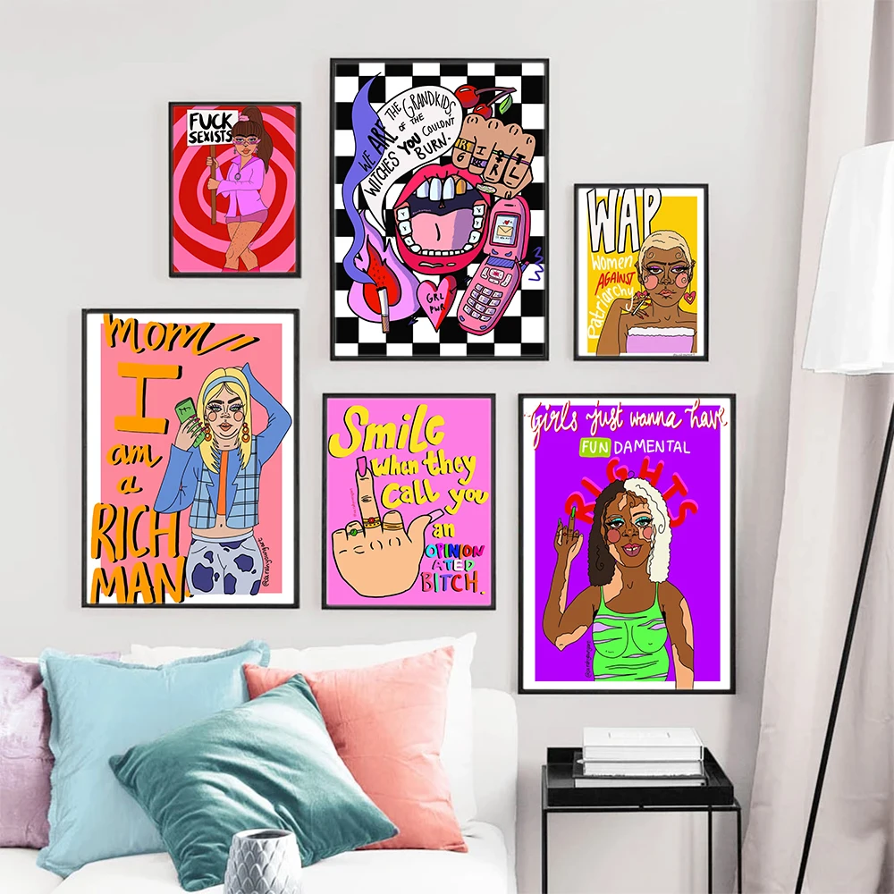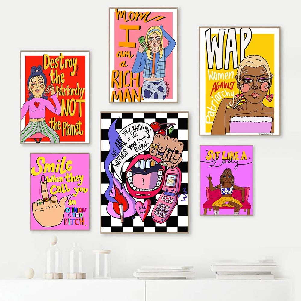 Винтажная розовая Картина на холсте Феминистская художественная Цитата Забавный женский плакат и печать модная картина феминизма для гостиной домашний декор