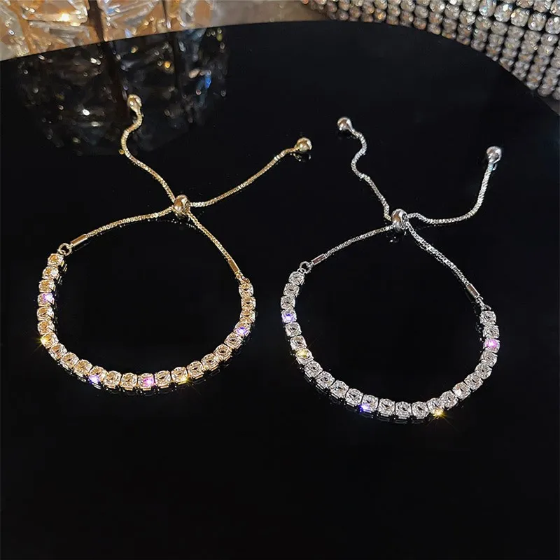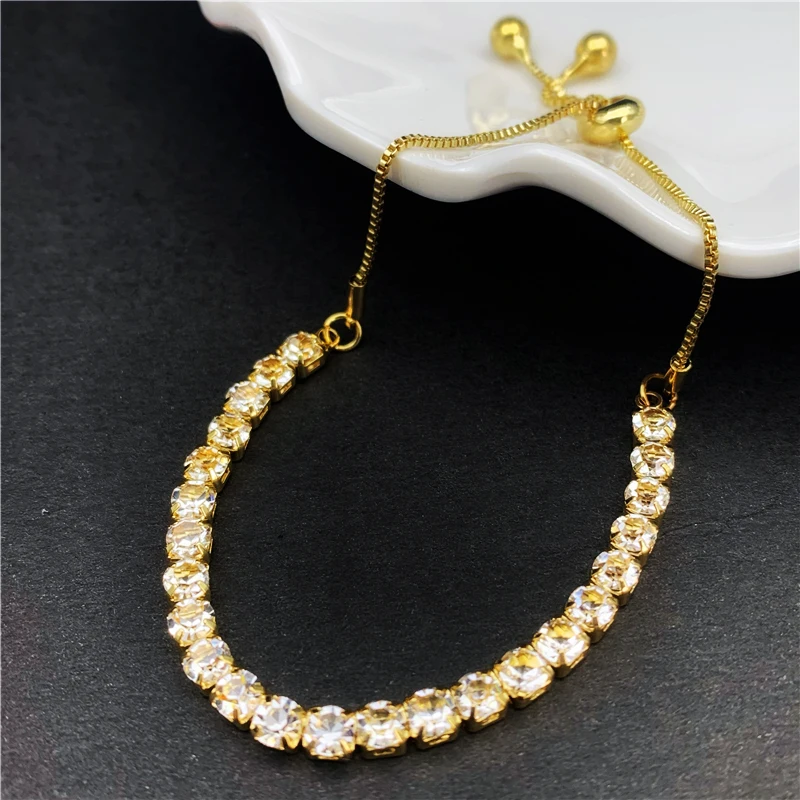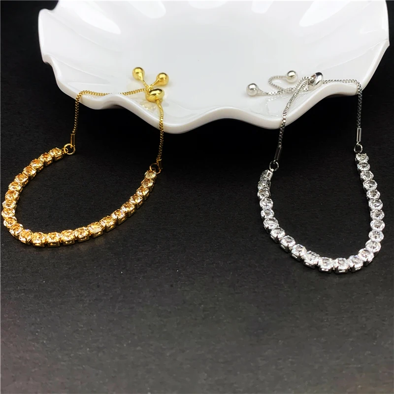 Женский браслет для тенниса, регулируемый браслет золотого и серебряного цвета с фианитами
