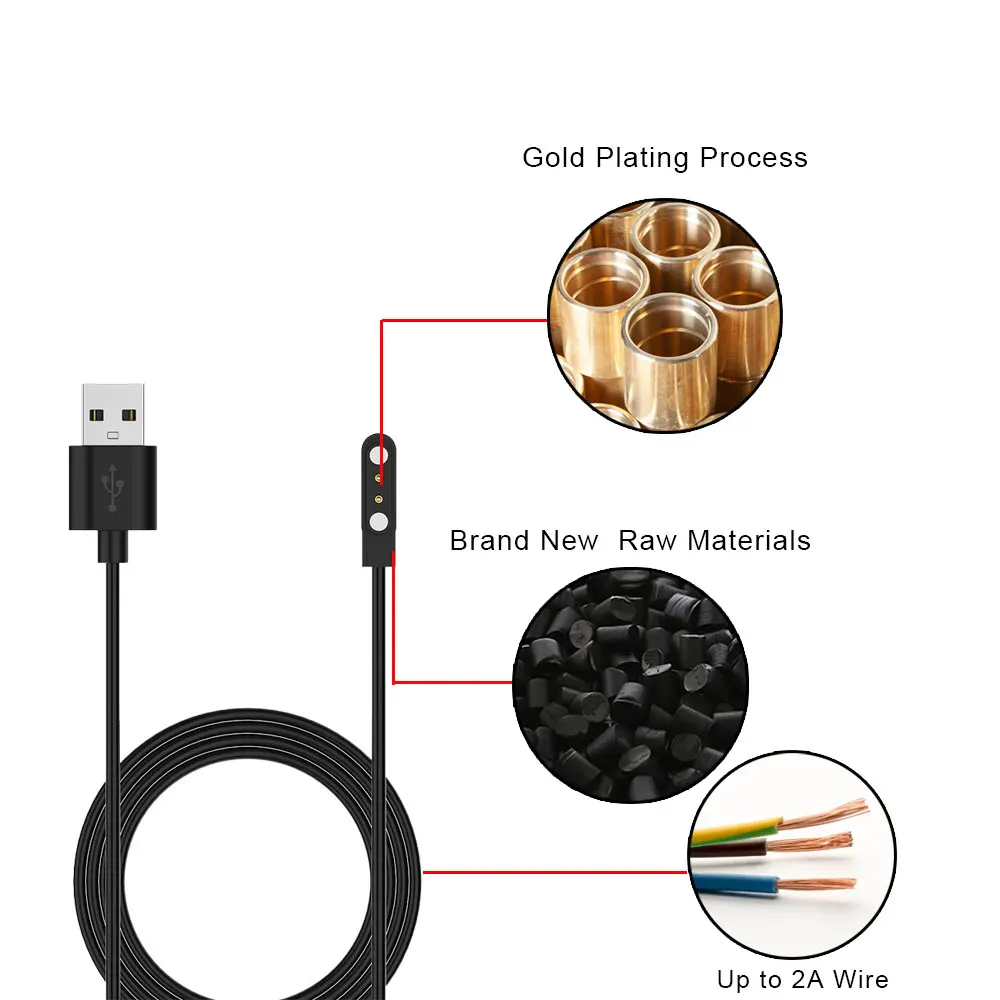 Магнитный всасывающий зарядный кабель для смарт-часов, 2pin, 4 мм