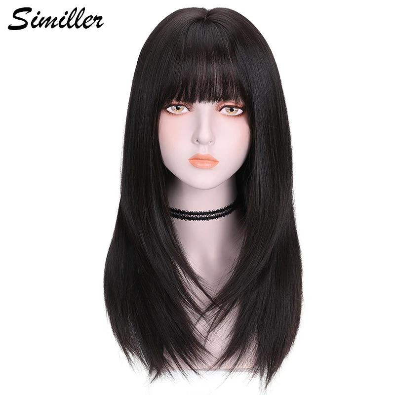 Similler Длинные Синтетические парики для женщин термостойкие прямые волосы черные коричневые парики омбре с челкой для ежедневного использования