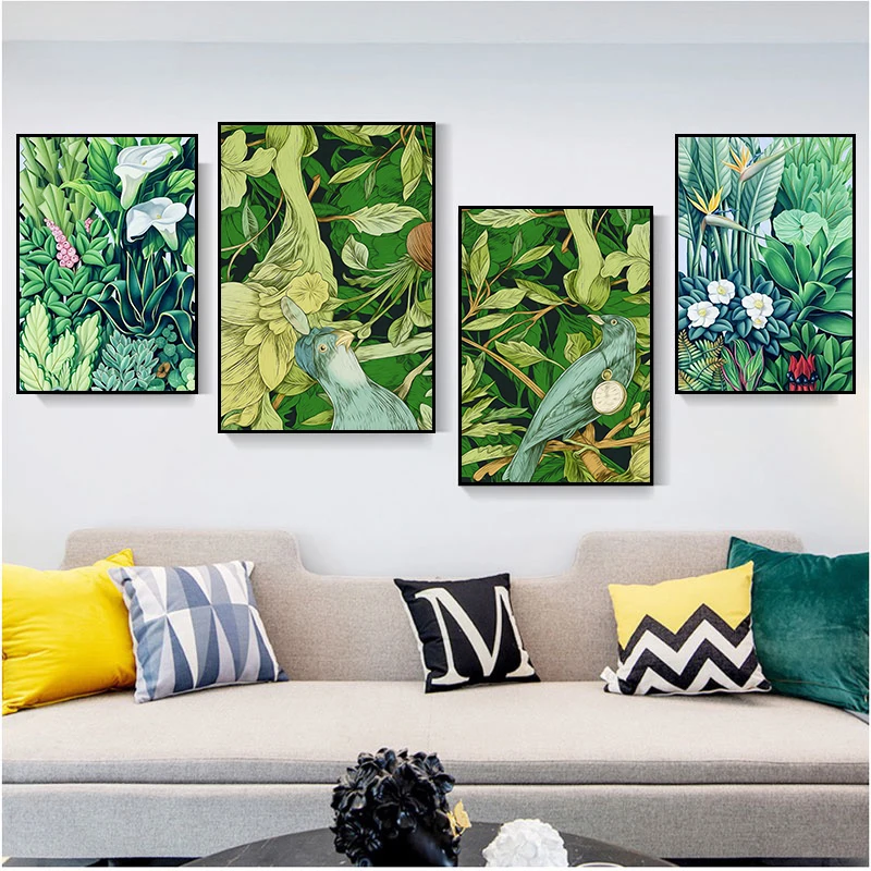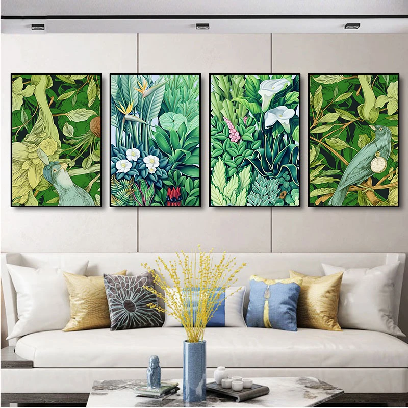 Скандинавская пасторальная комбинация цветов и птиц, постер, галерея, картина маслом, украшение, печать на холсте, украшение для дома, фреска