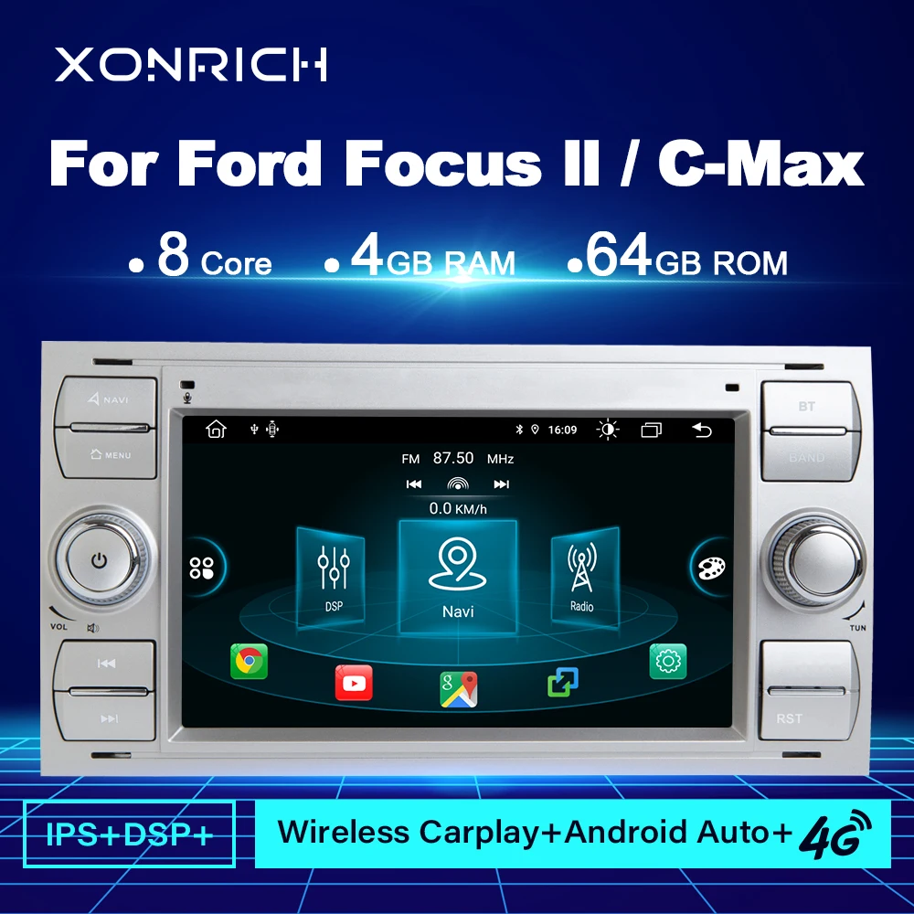 Автомагнитола Carplay Android 11 для Ford Mondeo S-max Focus C-MAX Galaxy Fiesta Transit Fusion Connect Kuga 2 Din без DVD