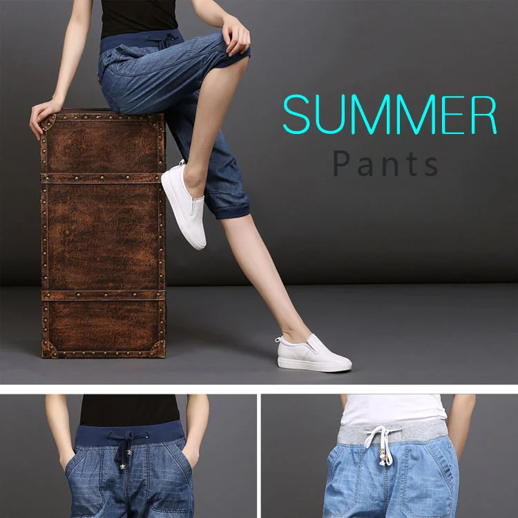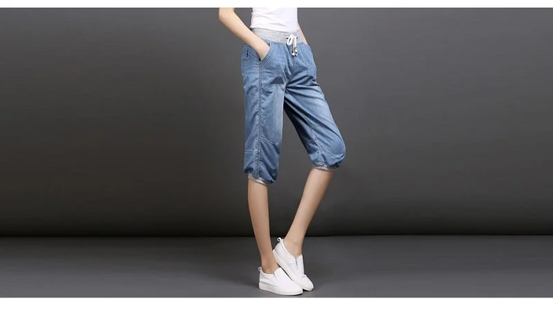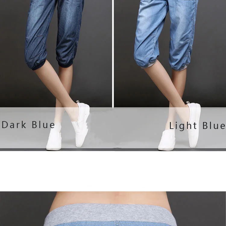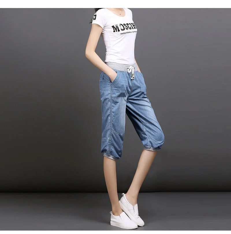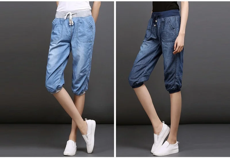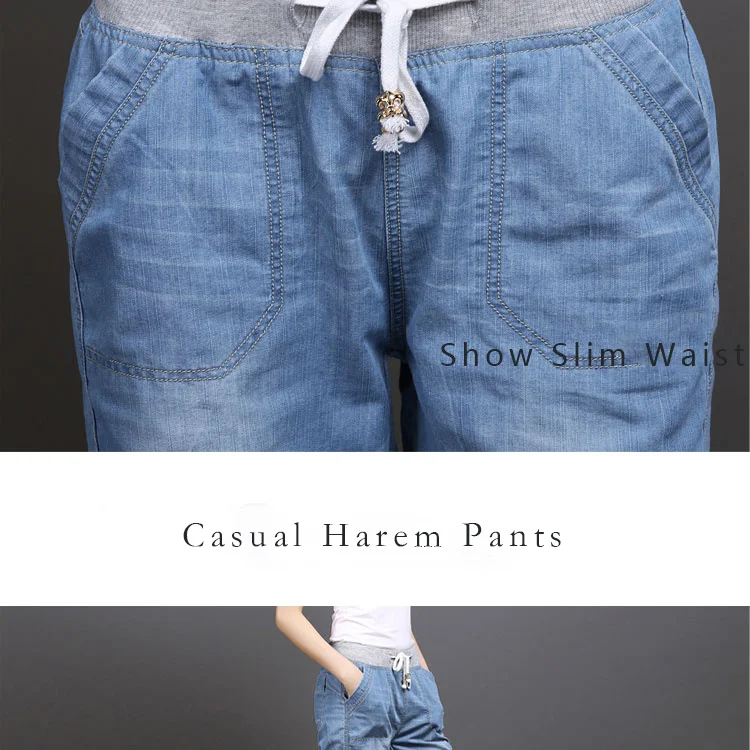 Женские джинсовые брюки-султанки, черные свободные хлопковые повседневные голубые брюки длиной до щиколотки с эффектом потертости, размеры 3XL, 4XL, на лето