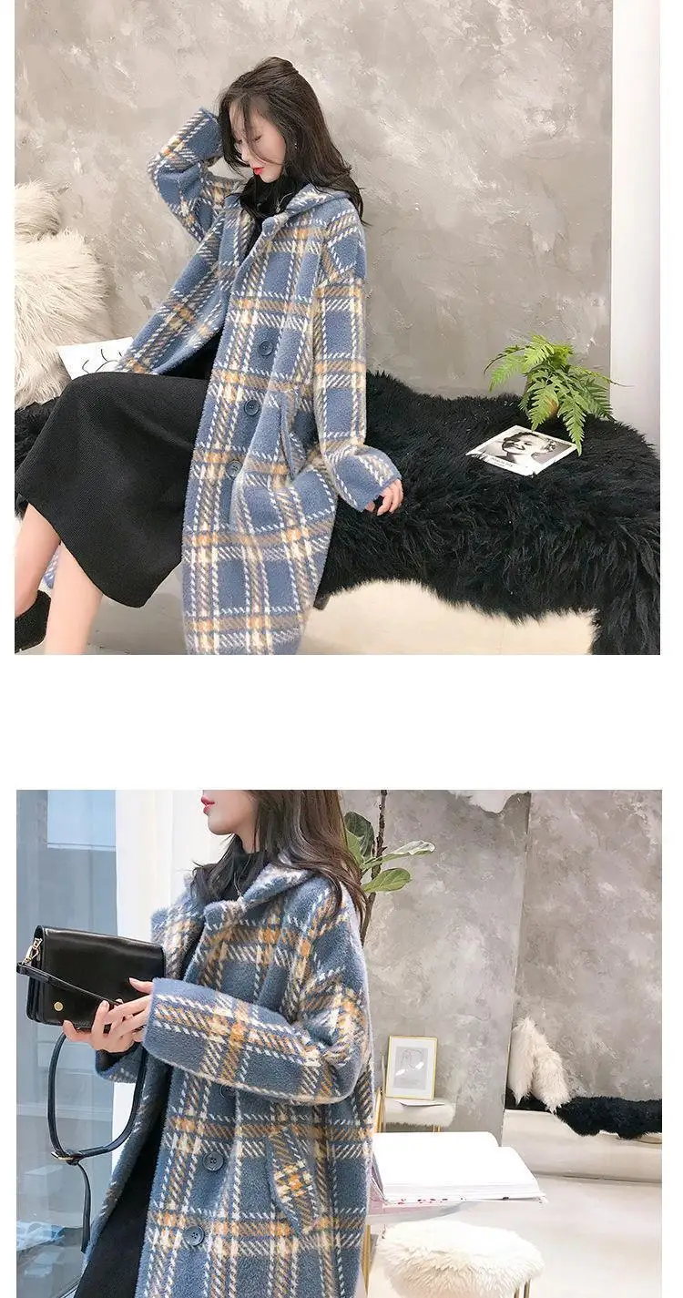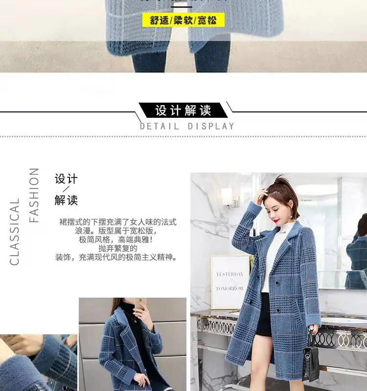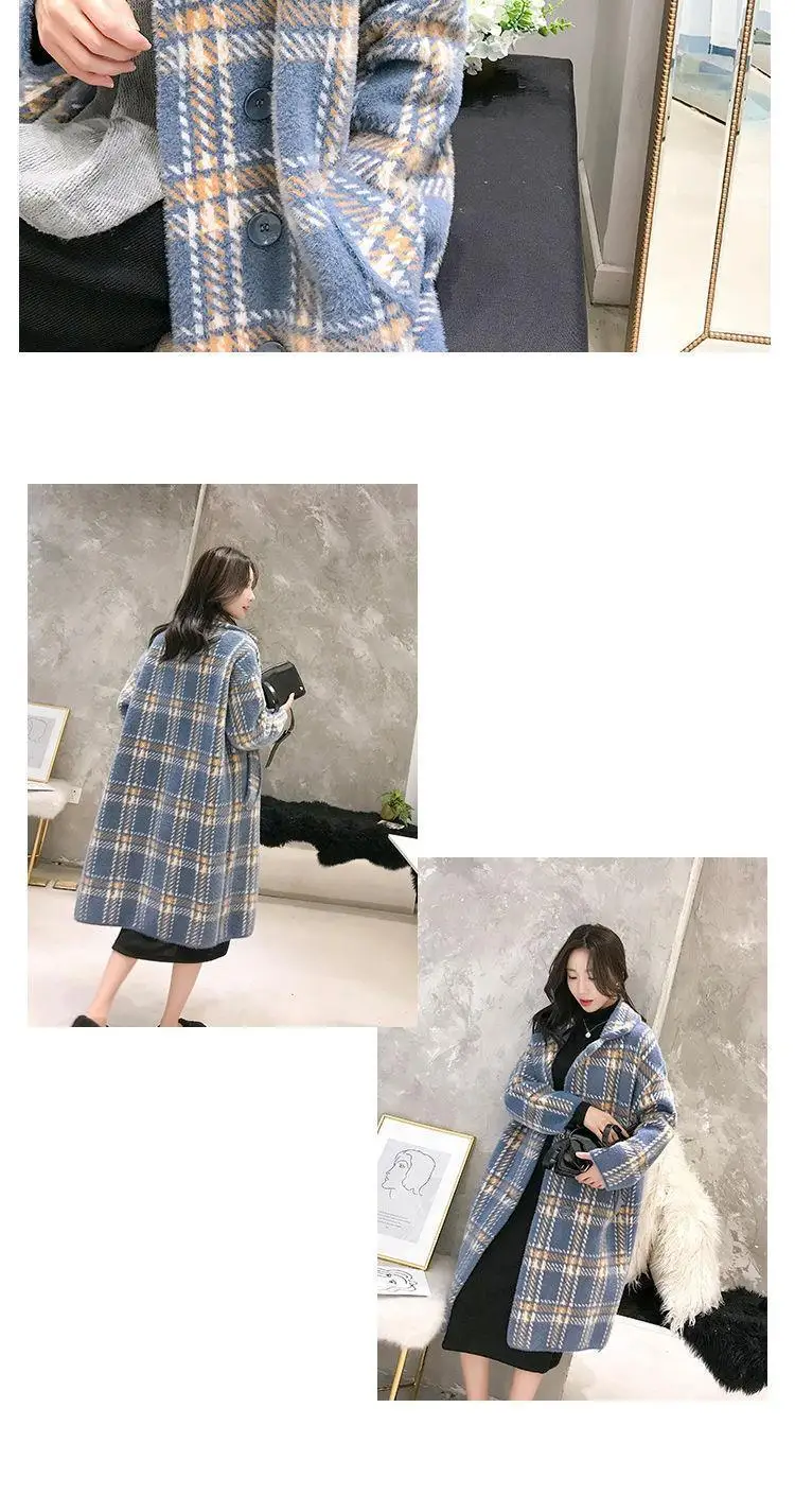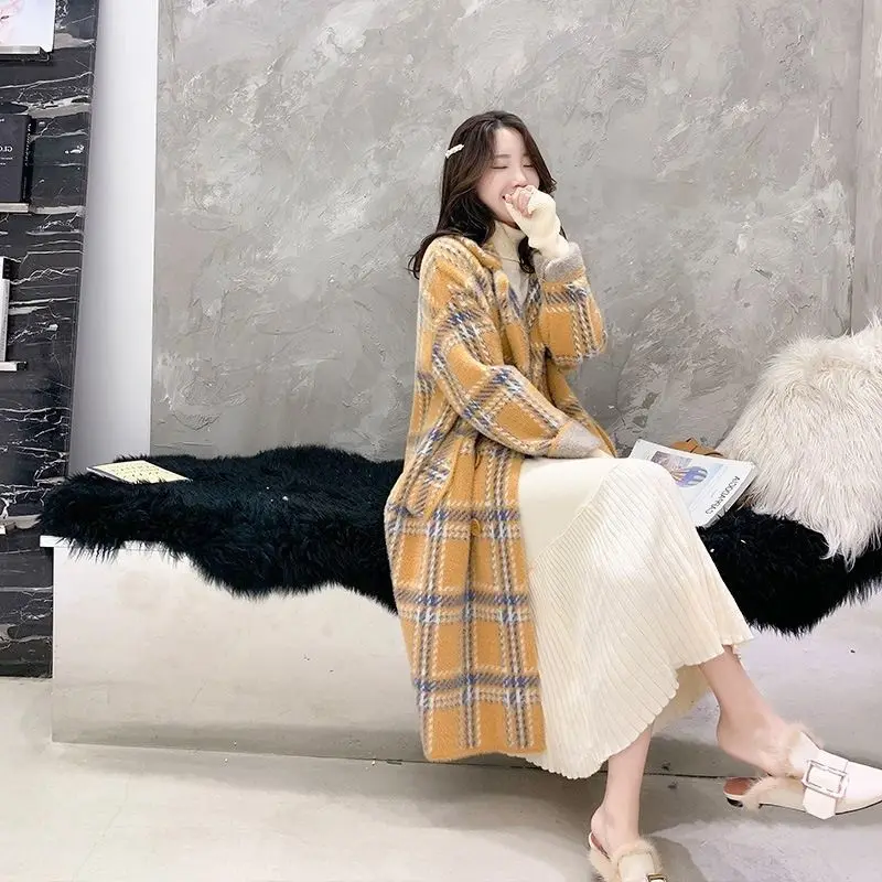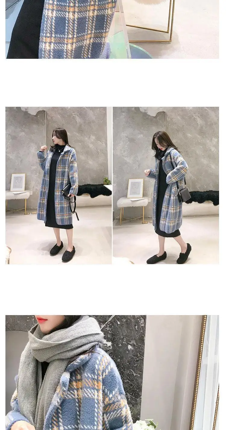 Пальто средней длины из искусственной норки и бархата для осени и зимы, новинка 2021, Корейская версия, свободный плотный шерстяной кардиган в клетку, Женская куртка