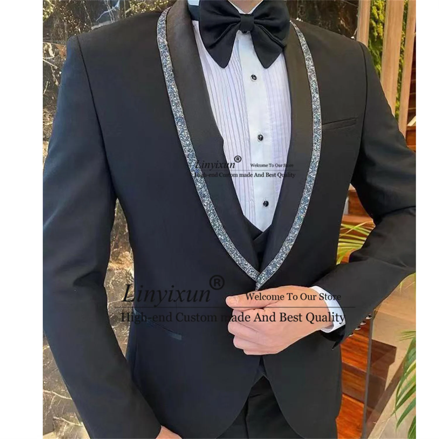 Роскошные блестящие мужские костюмы с отложным воротником и шалью, мужская одежда из 3 предметов, черный деловой мужской блейзер для выпусквечерние вечера, мужской костюм