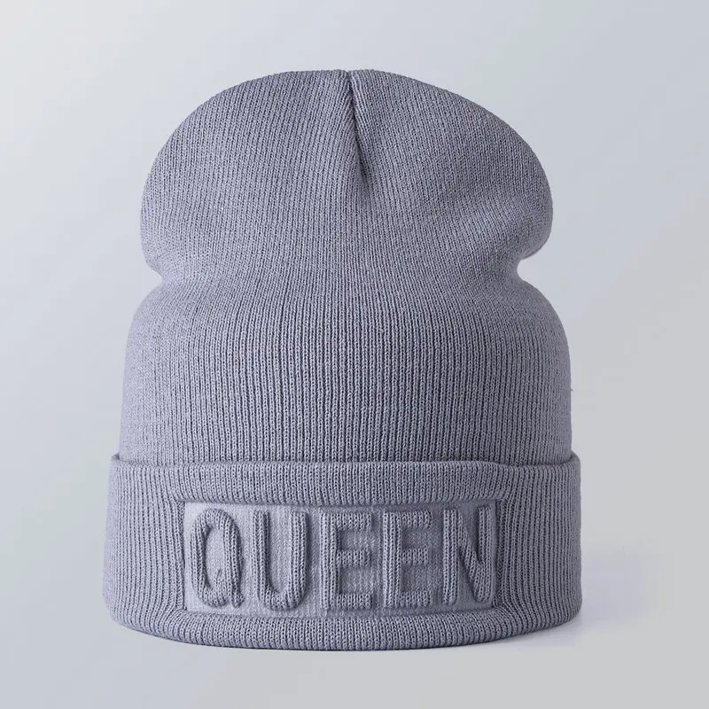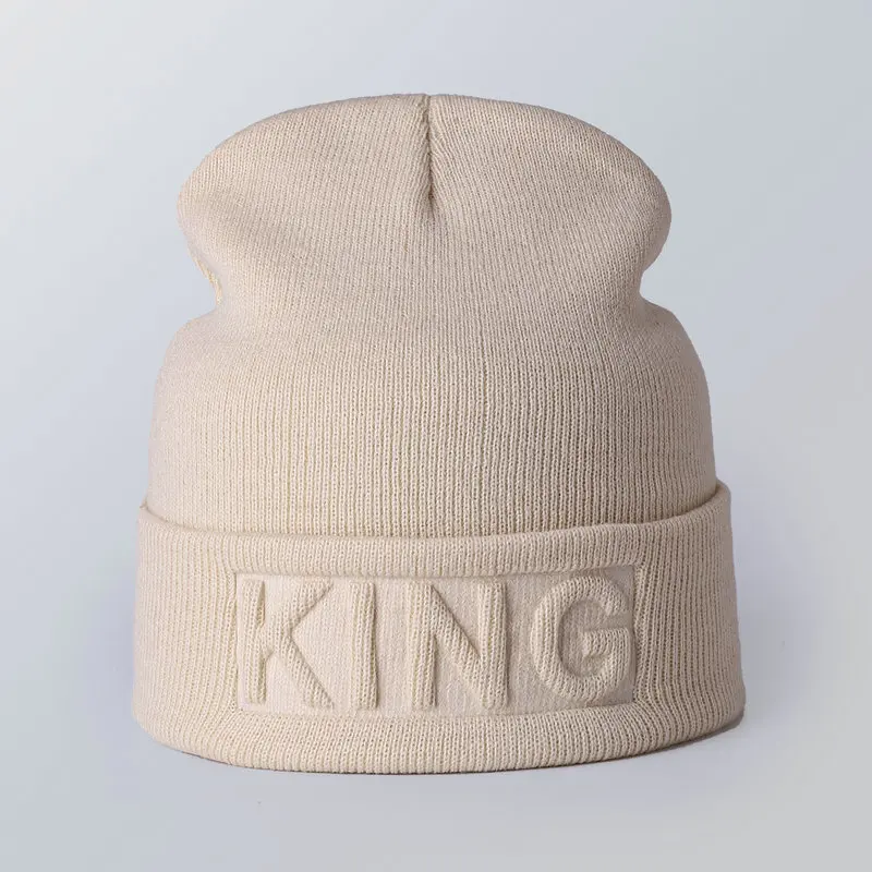 Модная зимняя шапка, облегающие шапки King Queen, шапка для пар в стиле хип-хоп, повседневная однотонная шапка, мужская и женская теплая вязаная шапка, лыжные шапочки, шапка