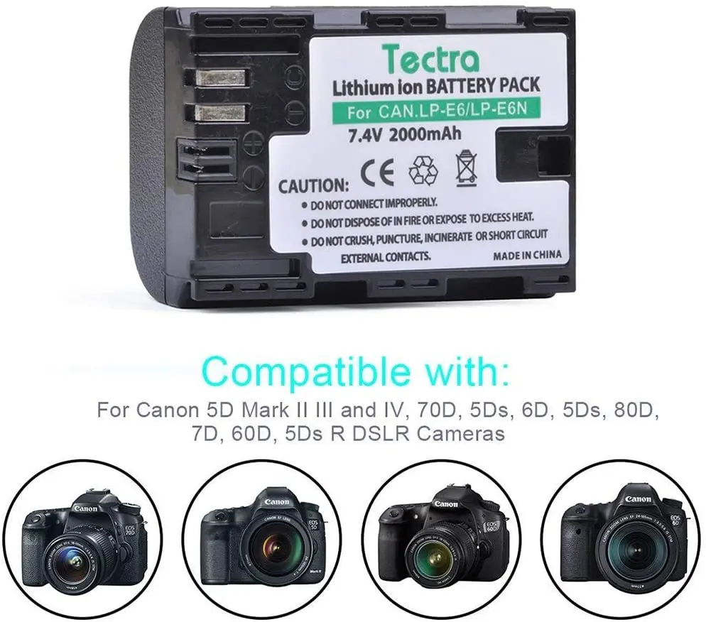Tectra Батарея bateria LP-E6 LP-E6N lpe6 LP E6 E6N Akku для камеры Canon LP-E6 EOS 5DS 5D Mark II Mark III 6D 7D 60D 60Da 70D 80D