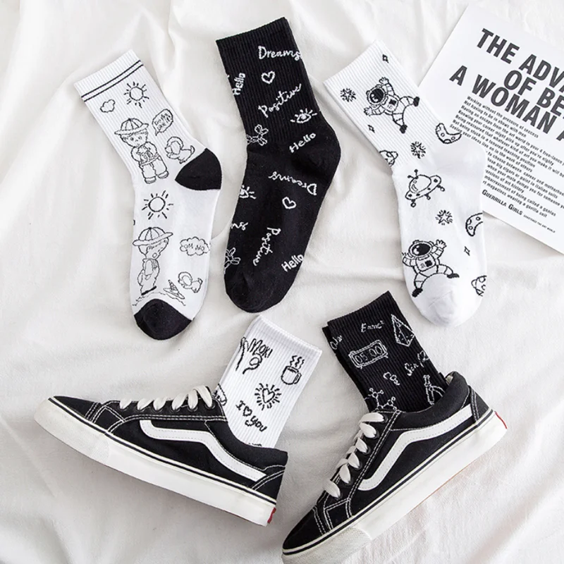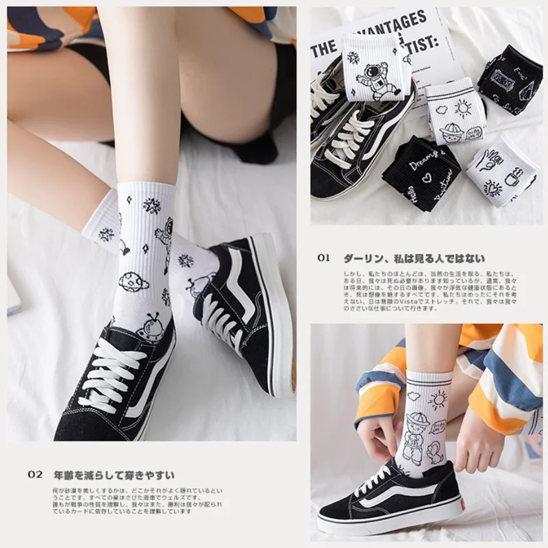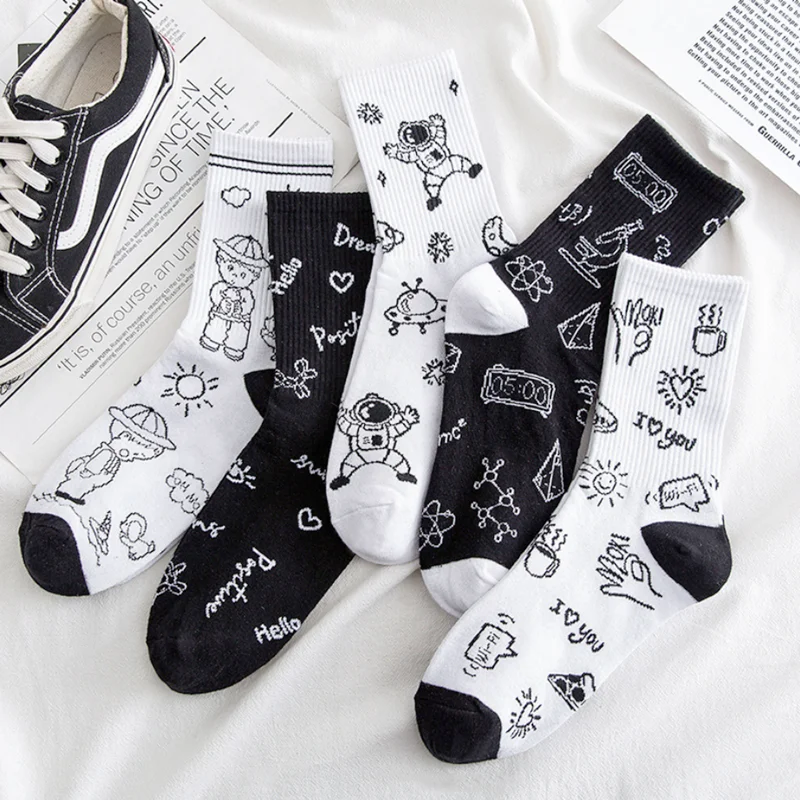 Новинка 2021 1 пара осенние черные и белые спортивные женские носки...