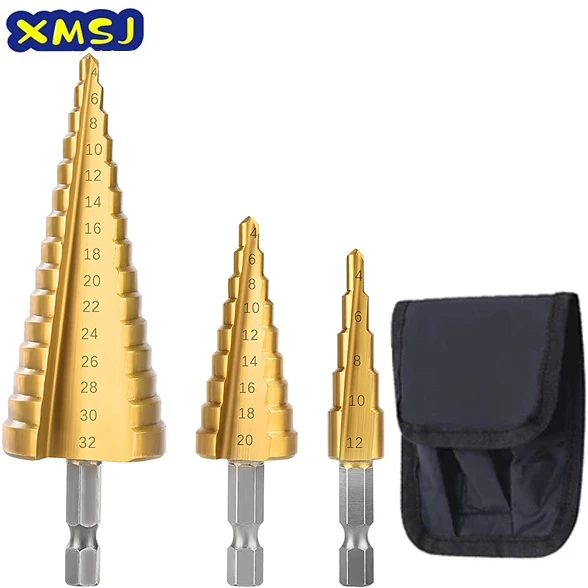 4-12 4-20 4-32 ступенчатое сверло из быстрорежущей стали с титановым покрытием сверлильные электроинструменты металлическое высокоскоростное стальное сверло для отверстий по дереву конусное сверло