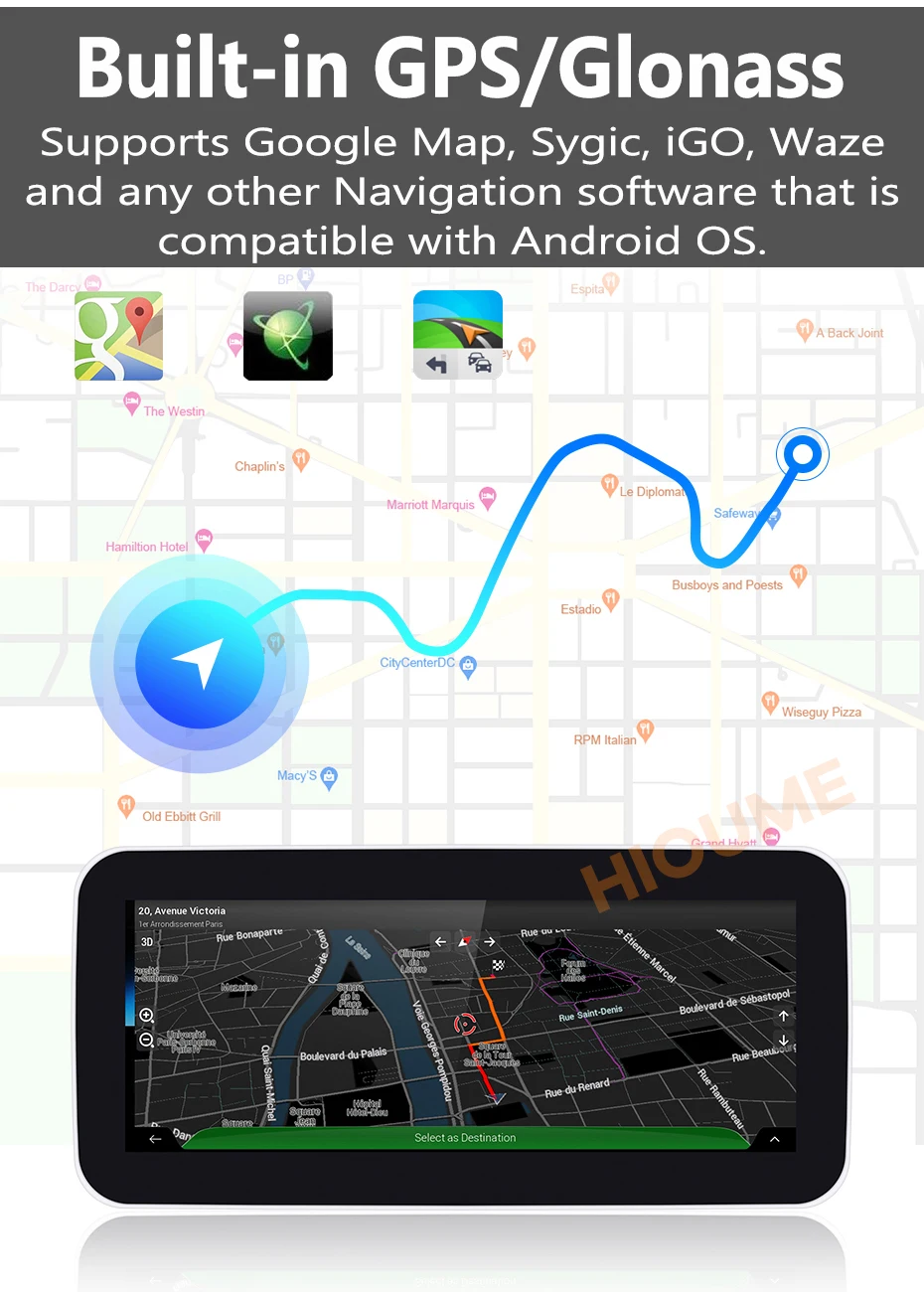> Встроенный GPS/ГЛОНАСС. Поддерживает Карты Google, Waze, iGo, Navitel, Sygic и т. Д., наслаждайтесь всеми вашими путешествиями по всему миру, и не нужно беспокоиться о потере.