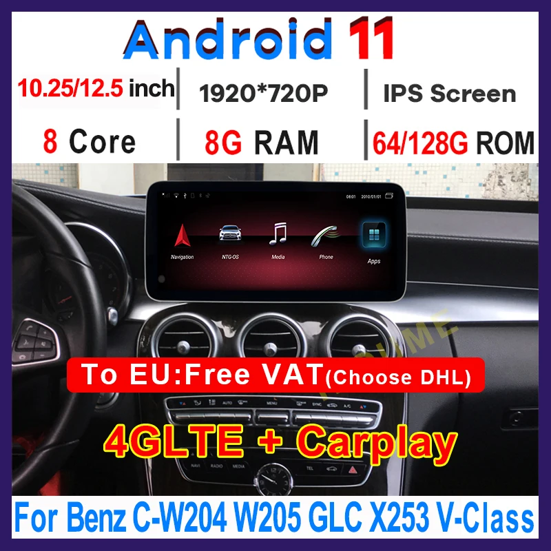 Автомагнитола Mercedes Benz C Class W204 W205 GLC X253 V Class W638, 10,25 дюйма12,5 дюйма, Android 11, 8 + 128G