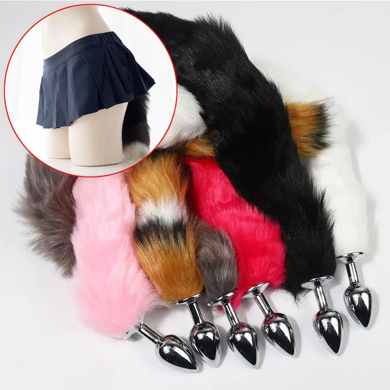 Анальная пробка среднего размера, лисий хвост, металлическая, для м...