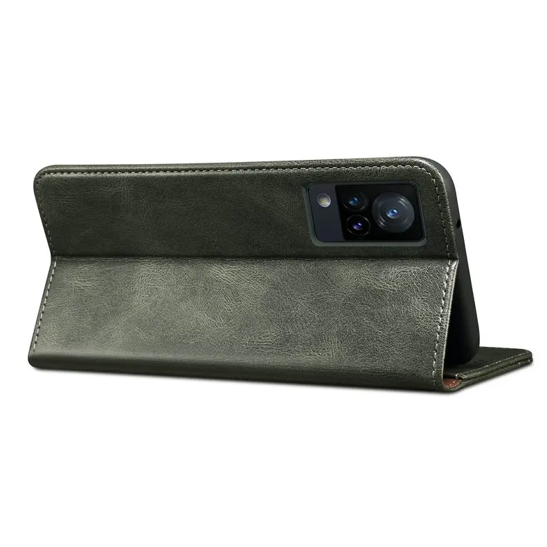 Кожаный чехол-книжка с магнитной текстурой для Vivo V21 5G 2021, ро...