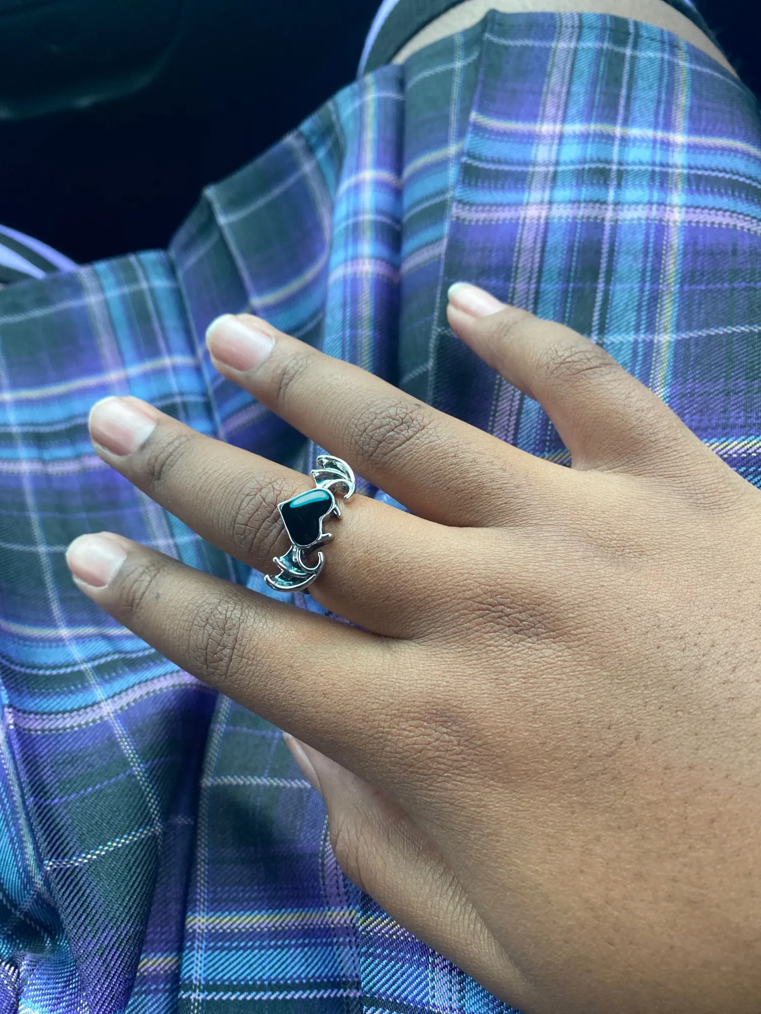 Кольцо в готическом стиле, черное, красное, сердце, демон, крыло, к...