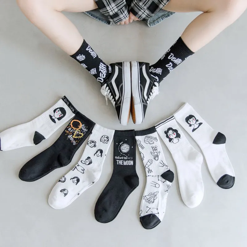 Новинка 2021 1 пара осенние черные и белые спортивные женские носки...