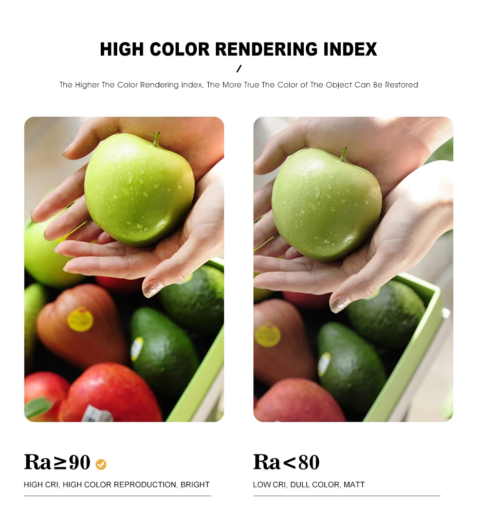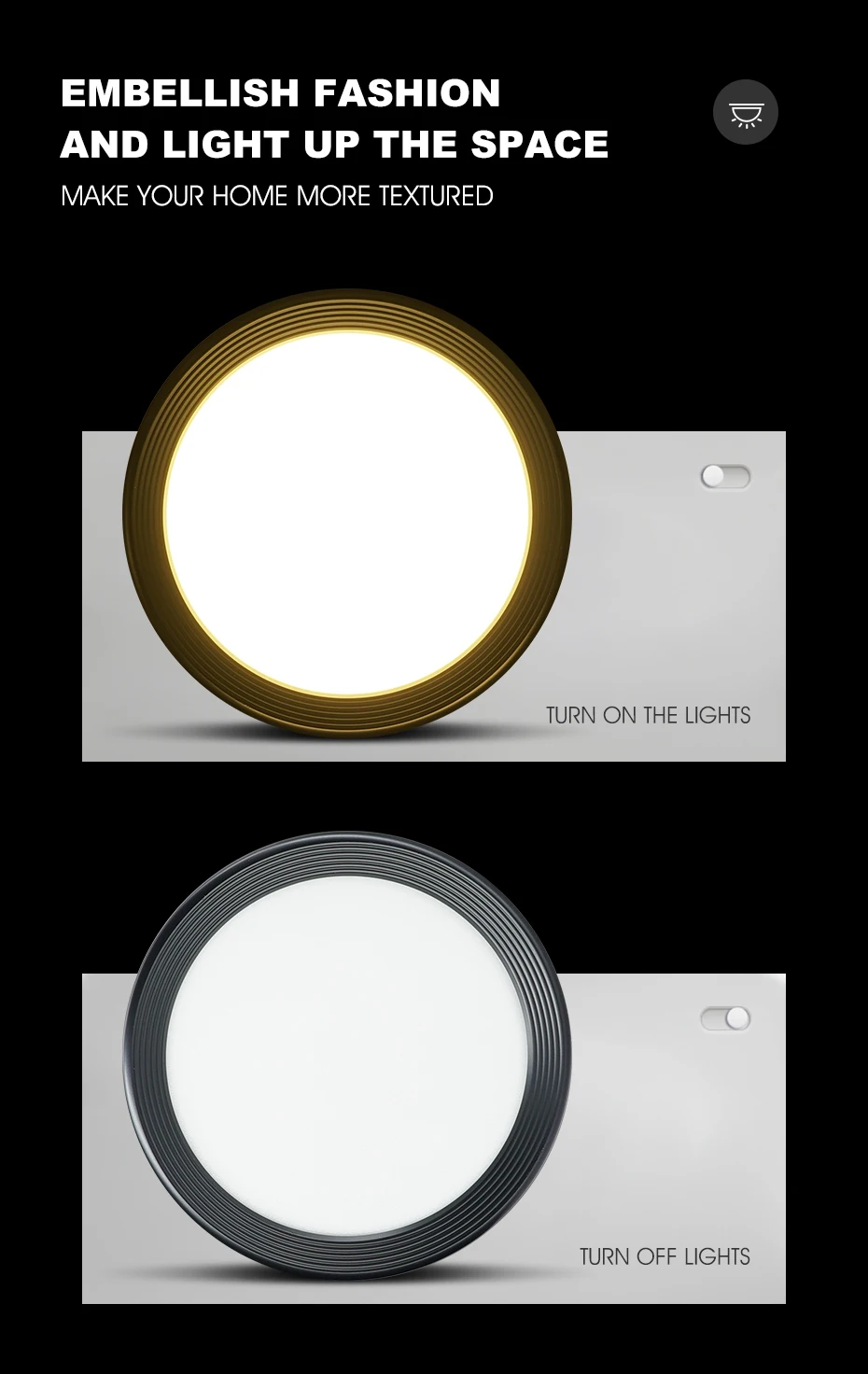 • Cricri90 этот потолочный светильник имеет рейтинг CRI90, который может приблизить светильник к реальному и оригинальному цвету объекта, придавая Вам более яркий и точный светильник. Этот светильник-поглощающий потолочный светильник обеспечивает полное поле зрения, равномерное, чистое освещение, сохраняя ваши глаза в безопасности от бликов и бликов.