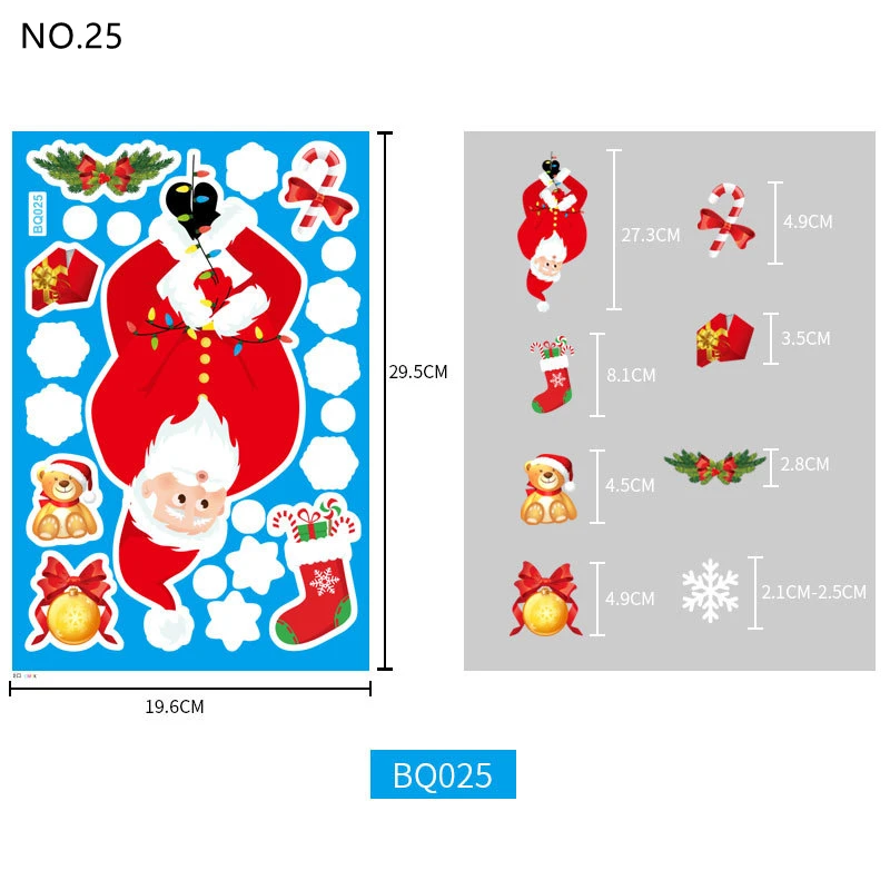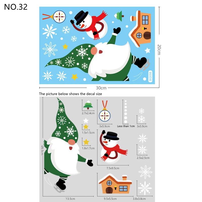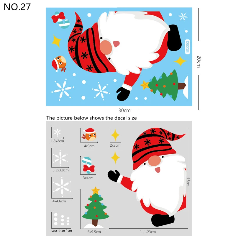 Рождественские наклейки на окна ПВХ статическое украшение для дома, большой Санта-Клаус, лось, стеклянный стенной дисплей в виде снеговика, Рождественский Декор