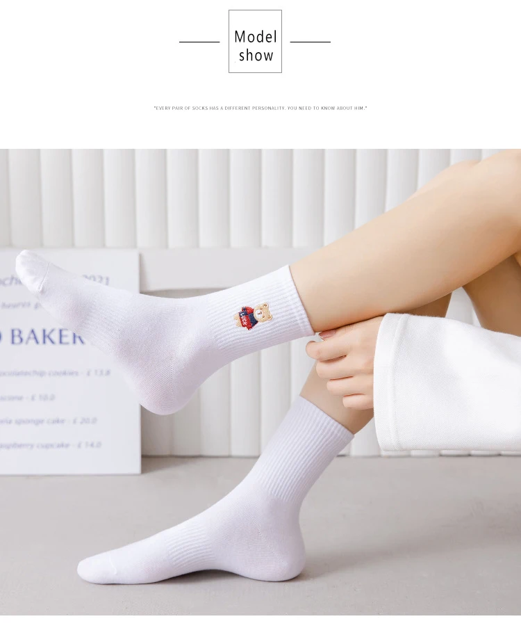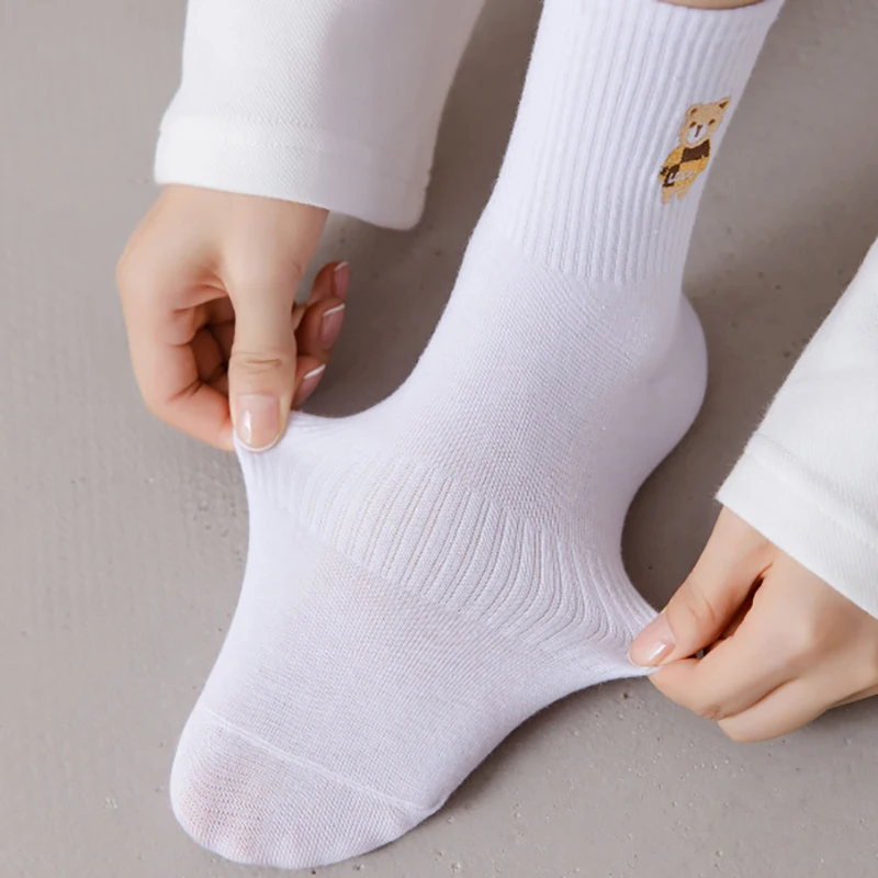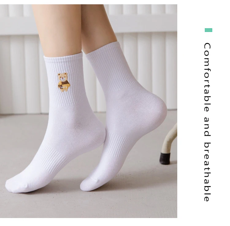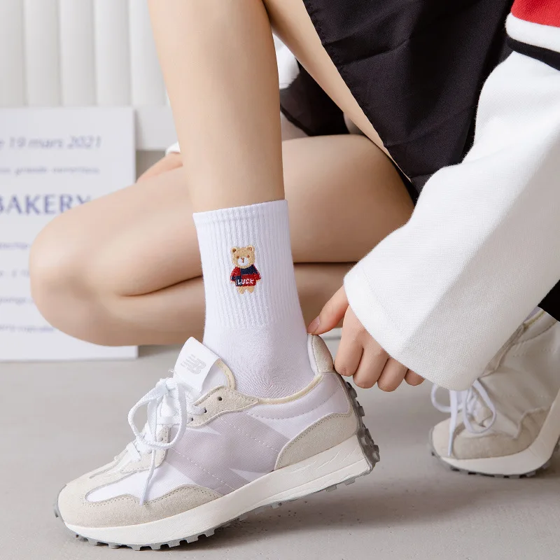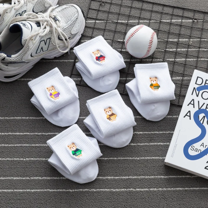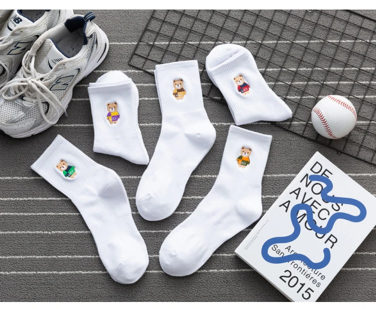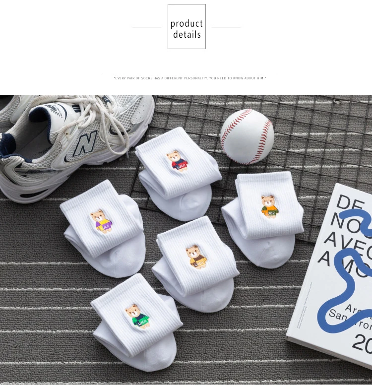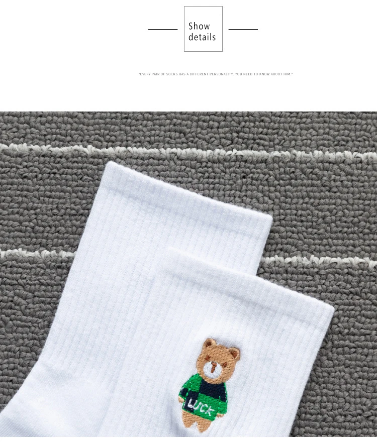 Носки женские с мультяшным рисунком, спортивные милые дизайнерские короткие носки с животным принтом медведя, уличный стиль
