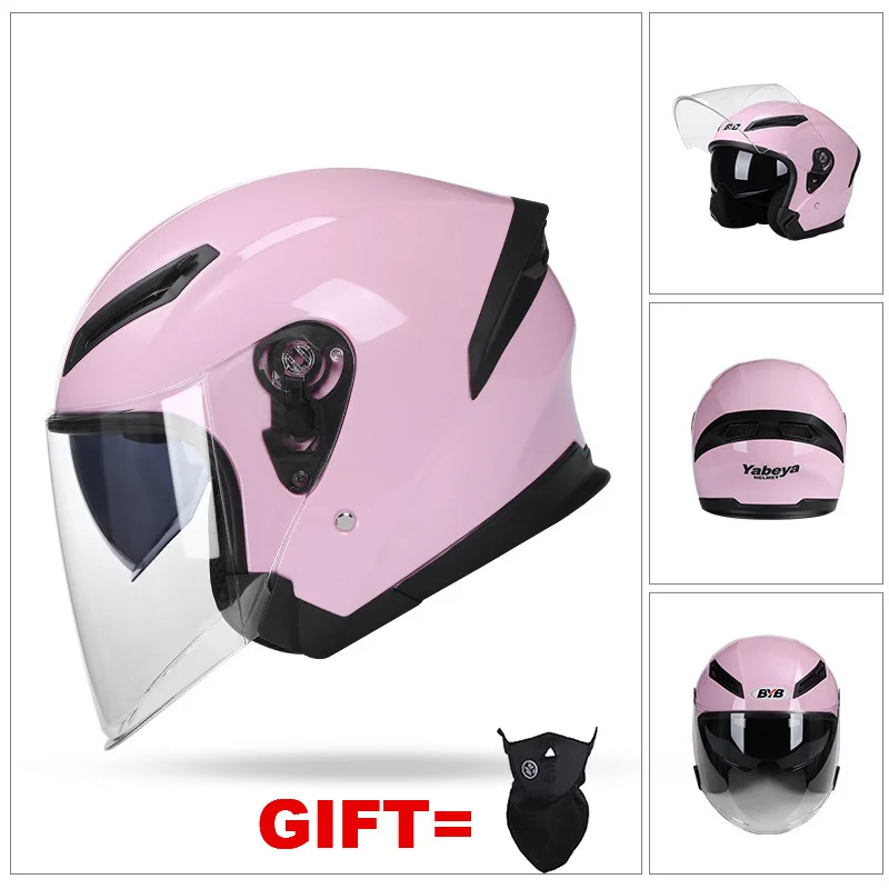Мотоциклетный шлем, полузащитный шлем с двойным козырьком и двойными линзами, в горошек, для взрослых