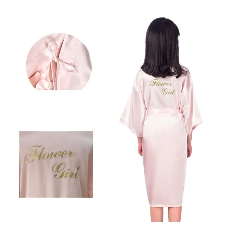 Оптовая продажа, шелковые атласные халаты с золотыми блестками и надписью для девочек, банные халаты для свадьбы, вечерние, детские халаты B155